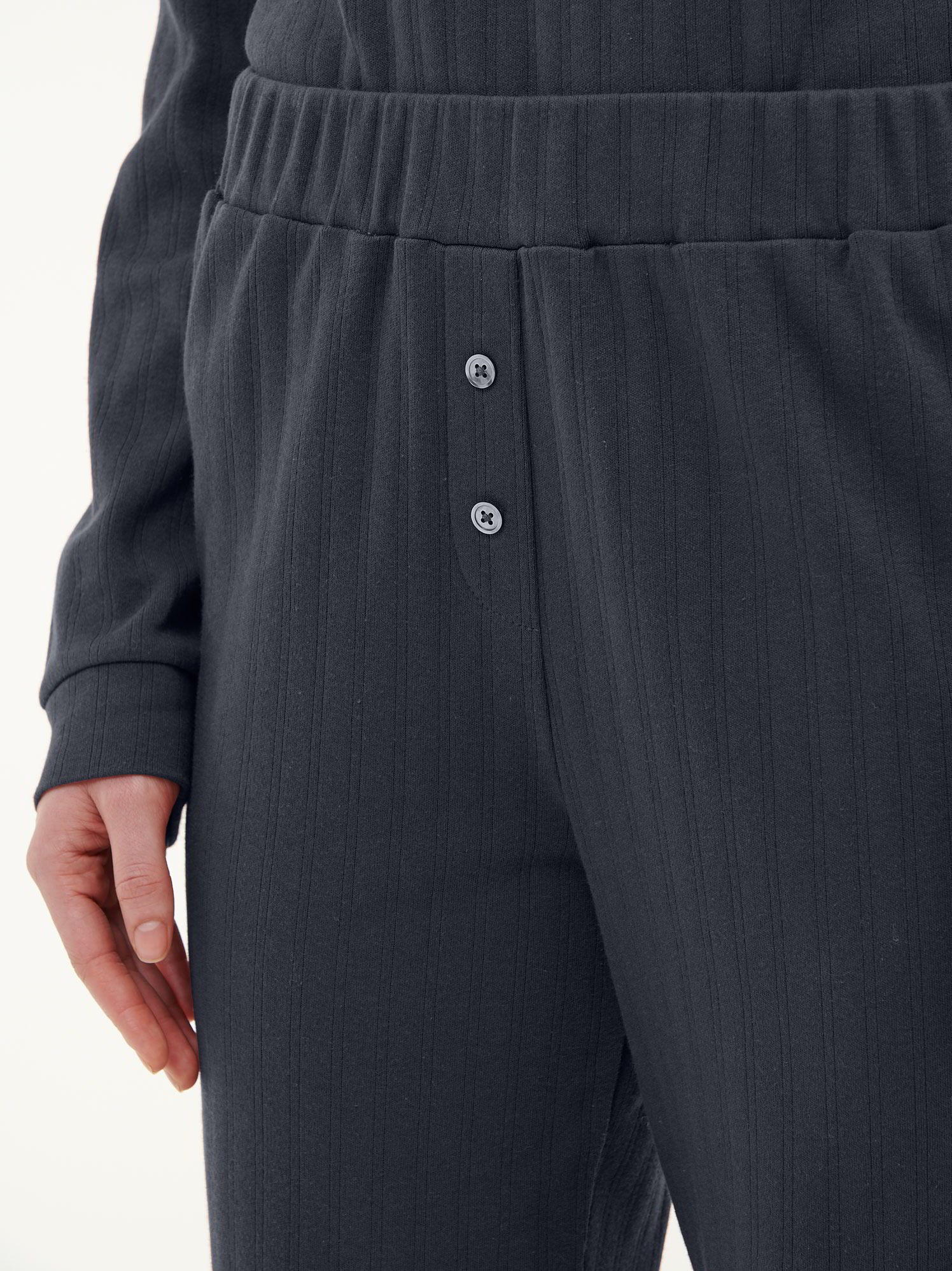 Für mehr Geborgenheit im Schlaf: Das leger geschnittene Schlafhose aus schwerer Ripp-Qualität liegt angenehm auf der Haut und sorgt für ein sanftes Tragegefühl. Die feine Streifen-Dessinierung verleiht dem Modell eine klassische Note, während der bequeme Gummibund und die feine Zier-Knopfleiste dezente, stilvolle Akzente setzen. Ein natürliches Lieblingsstück für entspannte Nächte – komfortabel, zeitlos und hochwertig.