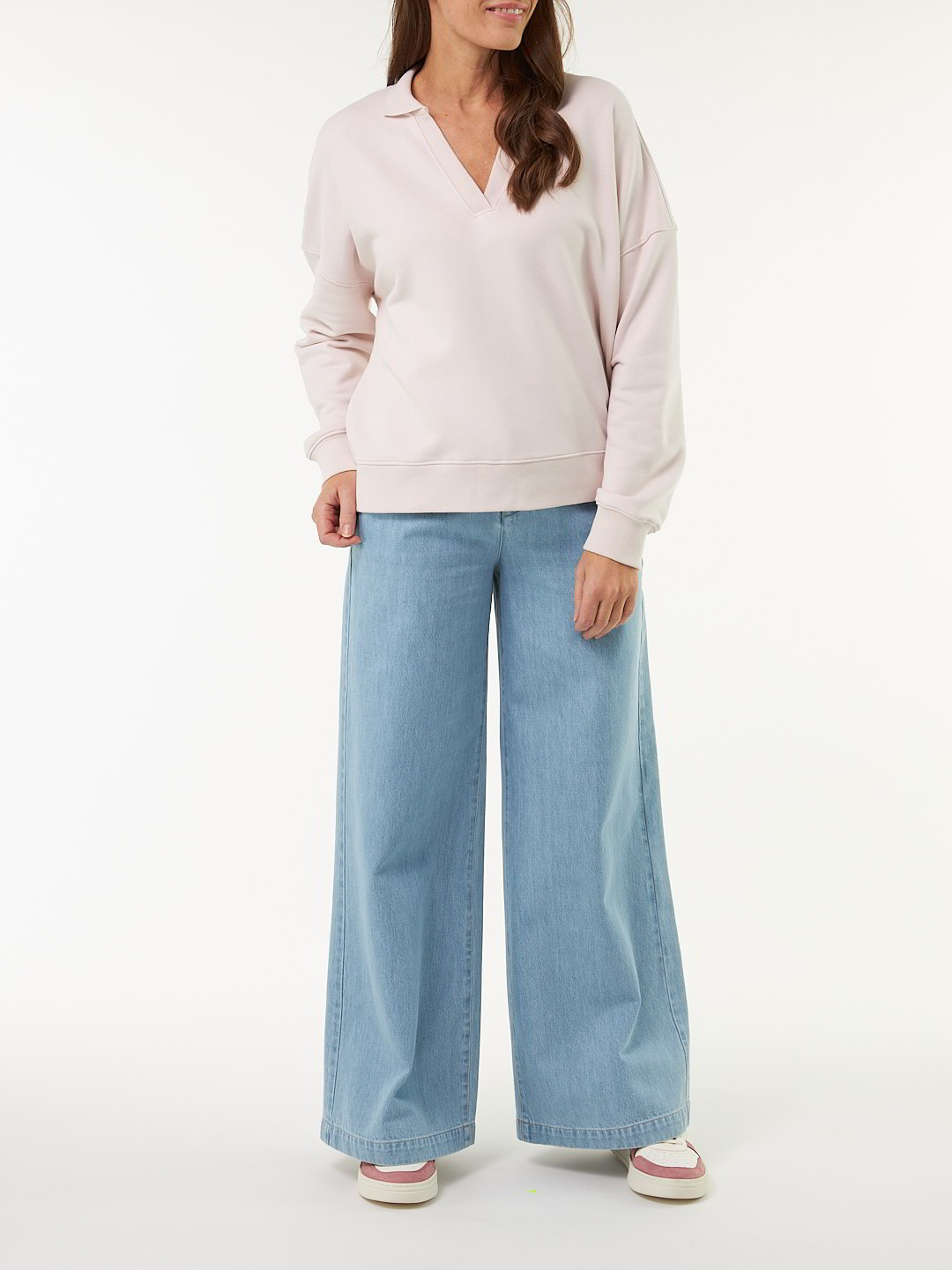 Oversize-Sweatshirt aus besonders weicher, hochwertiger Baumwolle kbA. Der Polokragen mit V-Ausschnittsleiste verleiht dem Modell eine sportive Silhouette, abgerundet mit Bündchen am Saum und Ärmelsäum. Der locker fallende Schnitt mit verkürzter Länge sorgt für einen legeren Look – ideal für den Alltag.