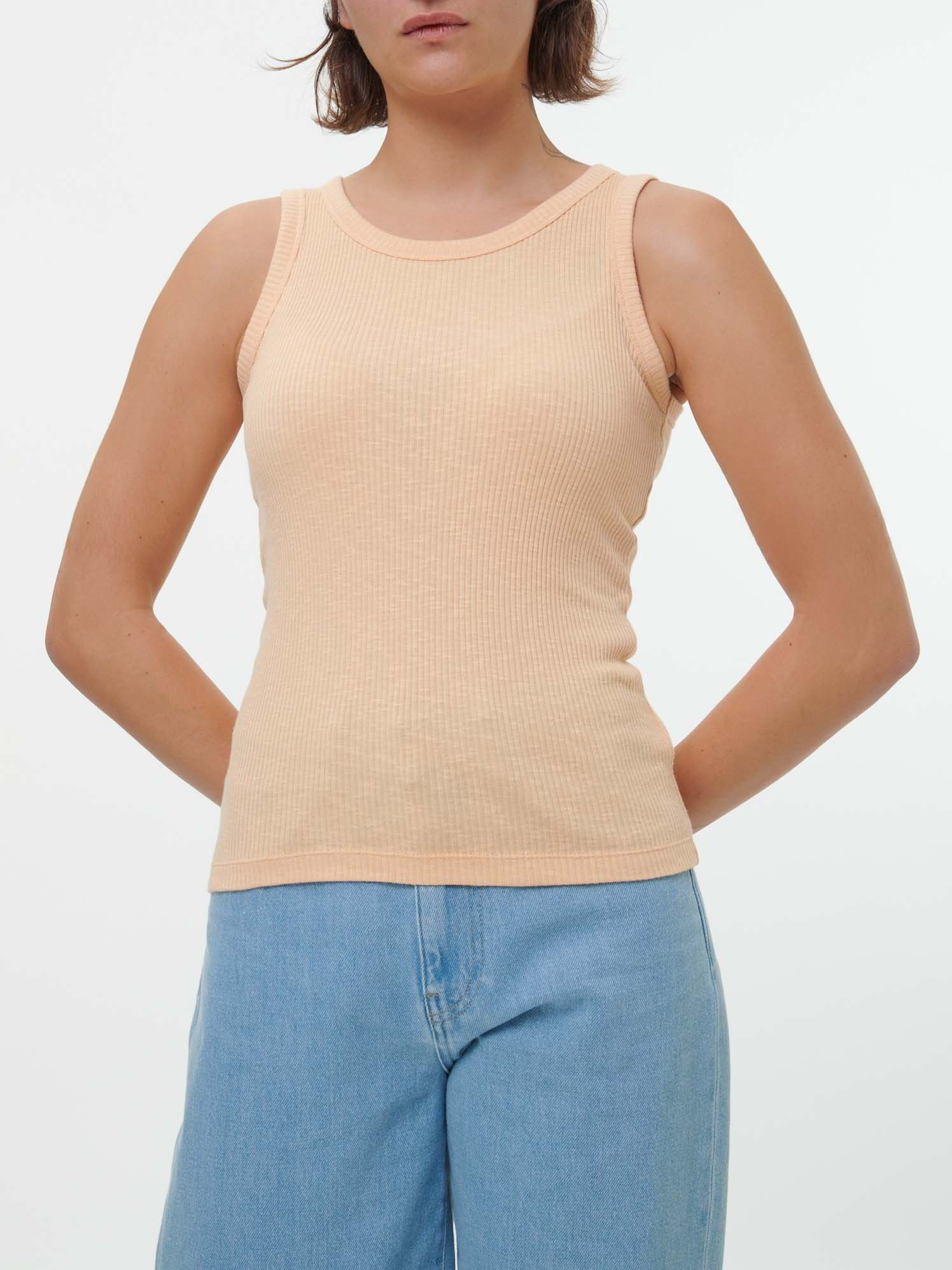 Sportlich-modern, zart im Griff und angenehm auf der HautKaum wegzudenken: figurbetontes Top aus hautfreundlicher Baumwolle. Das schlichte Modell hat einen weichen Griff, ist elastisch und lässt sich mühelos kombinieren. Es überzeugt mit Ripp-Struktur und Blende an Hals- und Armloch.Schnitt: figurbetont. Rückenlänge in Größe S (36/38) ca. 52 cm lang. Unsere Models sind zwischen 175 cm und 177 cm groß und tragen Kleidergröße S.Ökologisch & fair produziertEin schönes Stück Natur, welches wir nur zu gern tragen. Dieses Kleidungsstück entsteht aus Baumwolle kbA und wird nach strengen Richtlinien – wie dem Global Organic Textile Standard – bei unserem Partnerbetrieb gefertigt.Material: 100 % Baumwolle.Materialherkunft: Baumwolle kbA aus Indien und der Türkei. Gewirkt in Portugal. Gefertigt in Portugal nach dem GOTS. -
