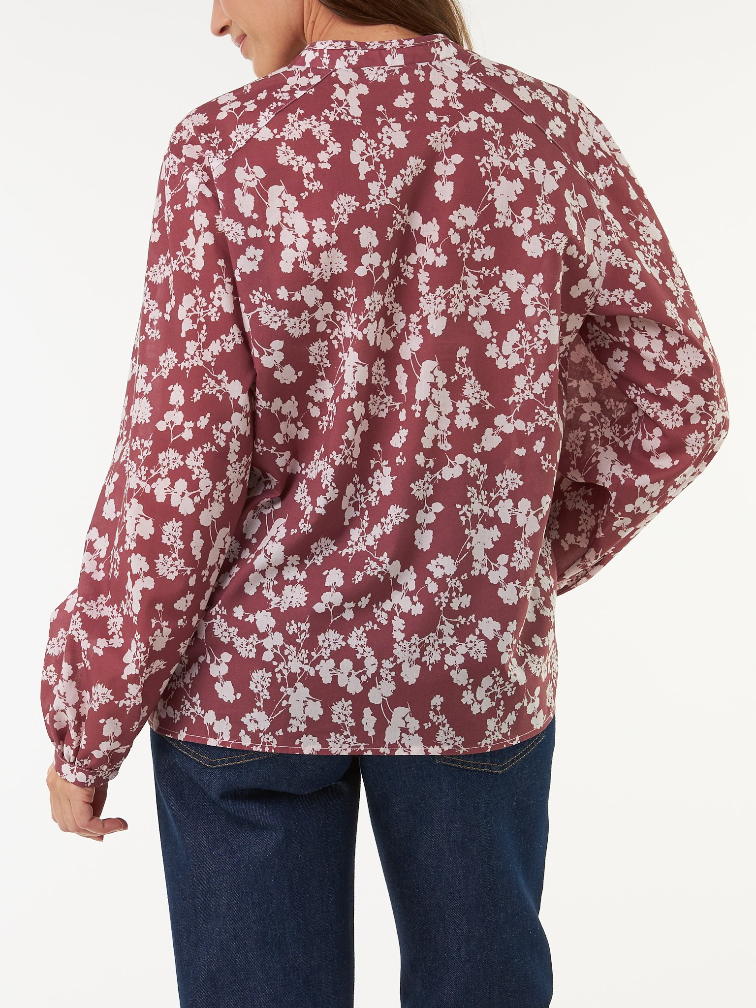 Feminin & leicht – mit verspielter RaffinesseLangarm-Bluse mit sanft gerundeter V-Ausschnitteinfassung und sommerlichem Blumendruck. Schmale Ärmelbündchen und Kräuselung an den Ballonärmeln verleihen dem Modell eine fließende Silhouette und dezente Volumenakzente. Die weiche Baumwoll-Qualität und der feminine Schnitt unterstreichen den modernen, zugleich entspannten Charakter dieser Bluse – ein vielseitiger Begleiter für viele Anlässe.Schnitt: leger. In Größe 36 ca. 64 cm lang. Unsere Models sind zwischen 175 cm und 177 cm groß und tragen Kleidergröße S.Ökologisch & fair produziertEin schönes Stück Natur, welches wir nur zu gern tragen. Dieses Kleidungsstück entsteht aus Baumwolle kbA und wird nach strengen Richtlinien – wie dem Global Organic Textile Standard – bei unserem Partnerbetrieb gefertigt.Material: 100 % Baumwolle.Materialherkunft: Baumwolle kbA aus der Türkei. Gewebt in der Türkei. Gefertigt in der Türkei nach dem GOTS. -