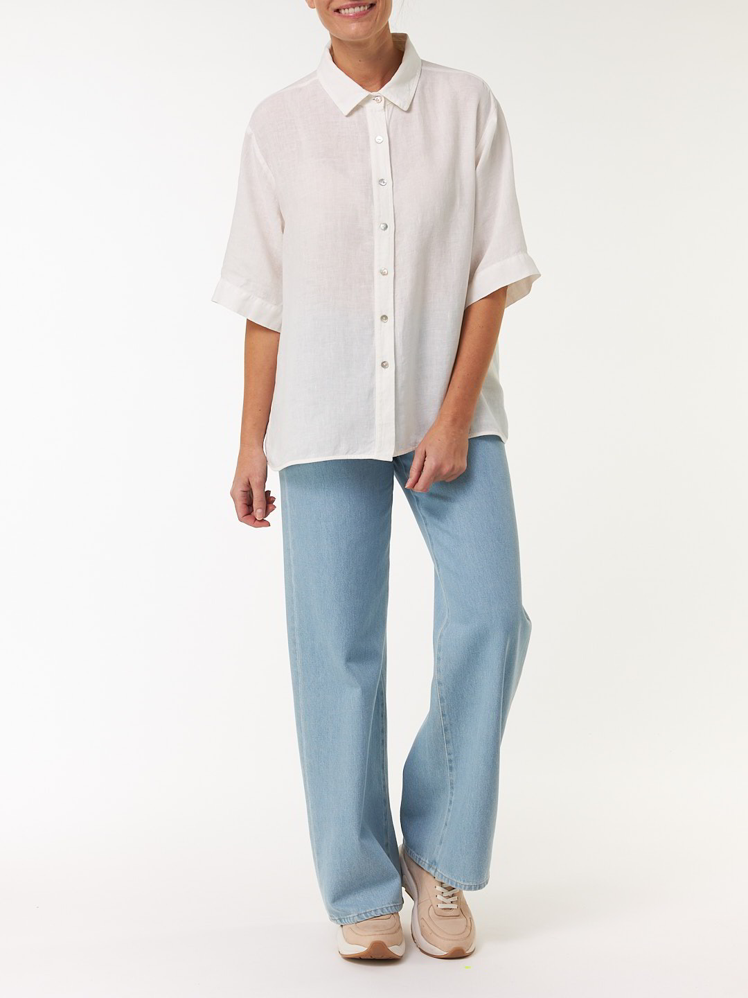 Die Hemdbluse aus reinem Leinen überzeugt durch ihre zarte Haptik und den charakteristischen, natürlichen Fall. Der klassische Schnitt mit Kragen, durchgehender Knopfleiste und eingesetzten Ärmeln verleiht dem Modell eine zeitlose Silhouette. Halbarm und edle Perlmuttknöpfe unterstreichen den sommerlichen Charakter – ein luftig-leichtes Essential mit natürlicher Eleganz.