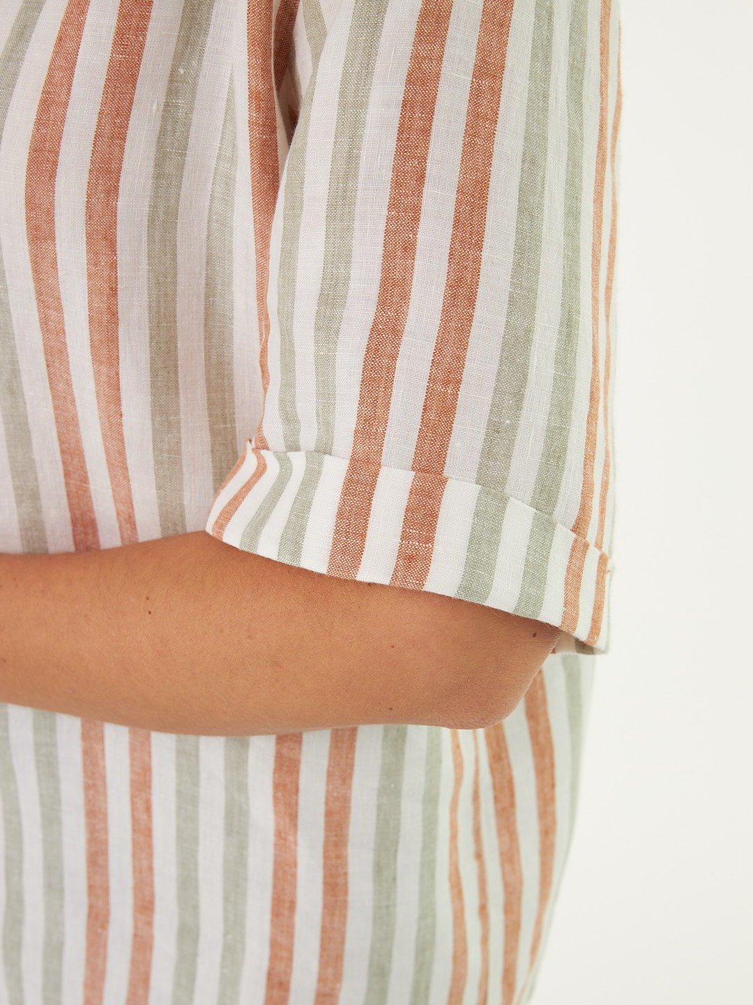 Bluse halbarm aus Bio Leinen, 56 seegras/bernstein streif, 34, GOTS