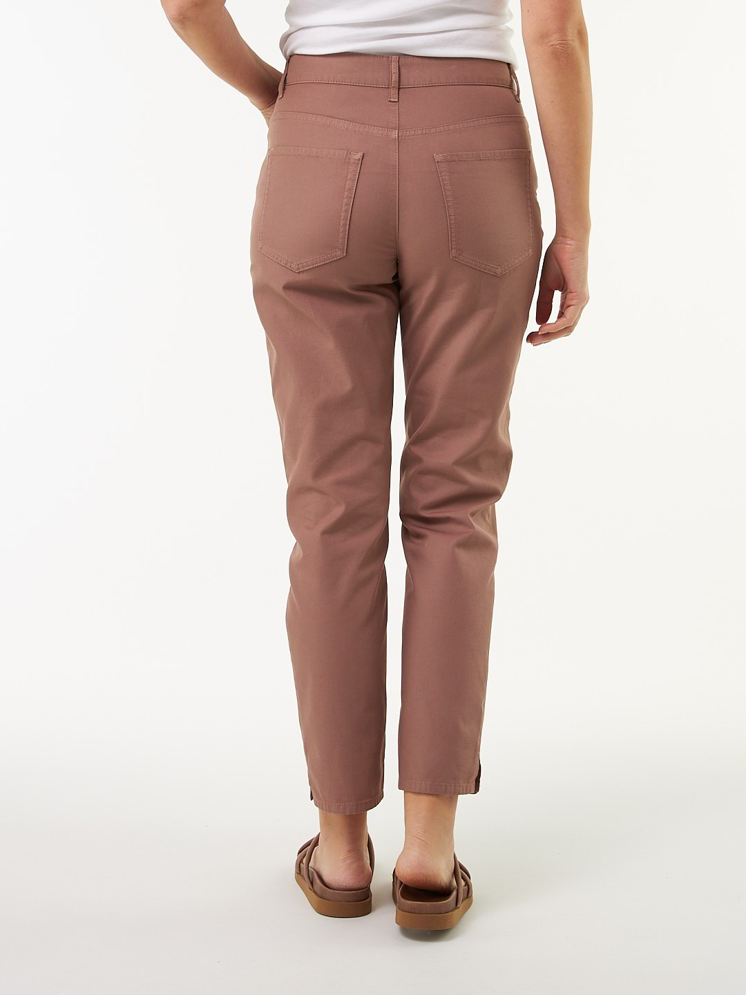 Zeitlose Hose im 5-Pocket-Style in sommerlicher Twill-Qualität! Das Modell mit schmalem Bein hat zwei seitliche Eingriffstaschen inkl. einer Münztasche auf der Vorderhose und zwei Gesäßtaschen auf der Hinterhose. Der Bund ist mit einem Jeansknopf und Reißverschluss sowie Gürtelschlaufen versehen. Weitere Details: zwei Seitenschlitze am Beinsaum.