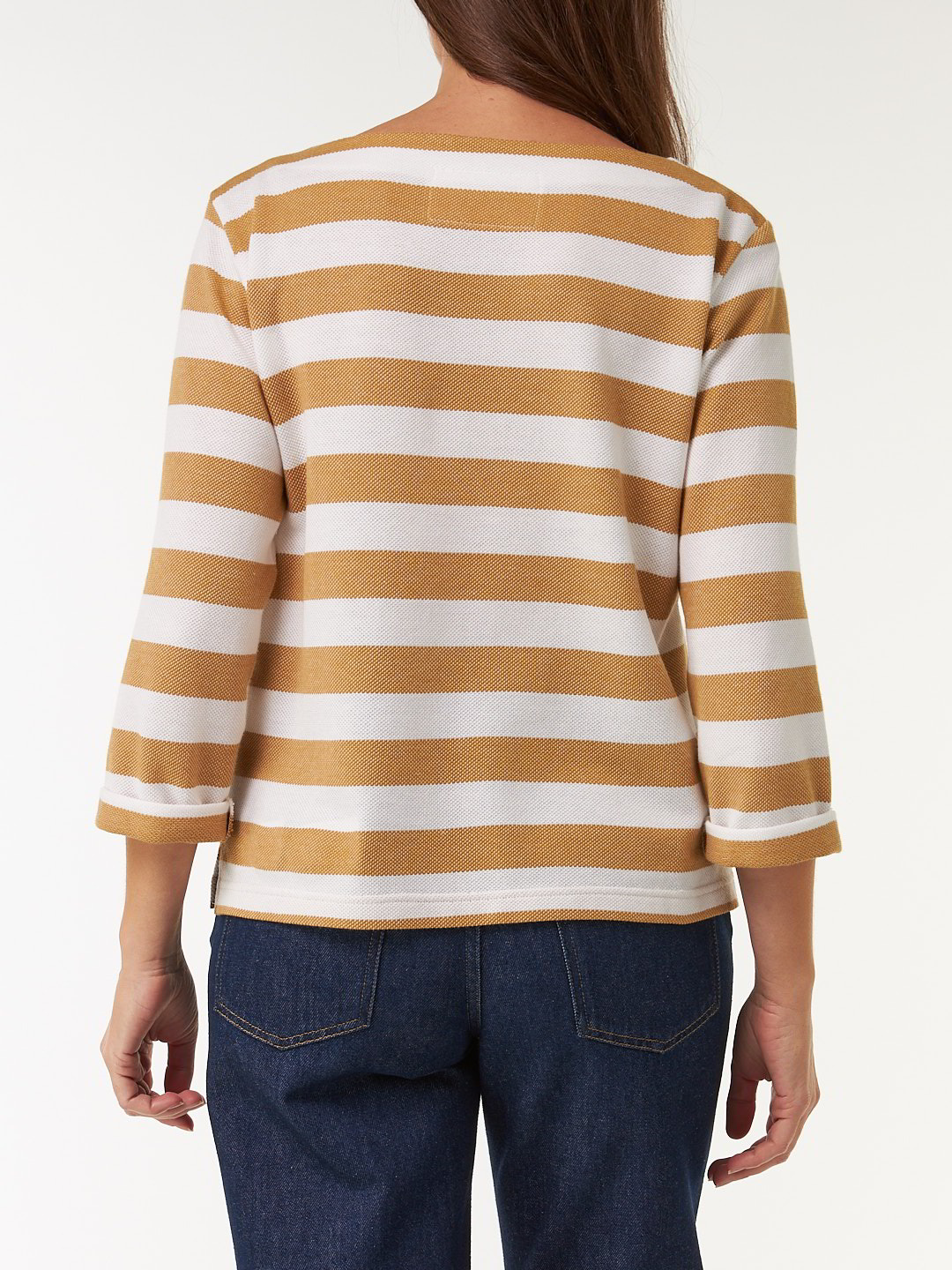 Feine Piqué-Struktur, leichter GriffFein strukturierter Piqué, leichter Griff und entspannte Silhouette: Das Shirt aus Baumwolle kbA präsentiert sich in harmonischer Blockstreifen-Optik mit U-Boot-Ausschnitt, und 3/4-Ärmeln mit schmalem Umschlag. Seitenschlitze am Saum ergänzen das Modell funktional und stilvoll zugleich – ein natürlicher Look mit lässigem Charakter.Schnitt: leger. In Größe 36 ca. 57 cm lang. Unsere Models sind zwischen 175 cm und 177 cm groß und tragen Kleidergröße 36.Ökologisch & fair produziertEin schönes Stück Natur, welches wir nur zu gern tragen. Dieses Kleidungsstück entsteht aus Baumwolle kbA und wird nach strengen Richtlinien – wie dem Global Organic Textile Standard – bei unserem Partnerbetrieb gefertigt.Material: 100 % Baumwolle.Materialherkunft: Baumwolle kbA aus der Türkei und Indien. Gewirkt in Litauen. Gefertigt in Litauen nach dem GOTS. -