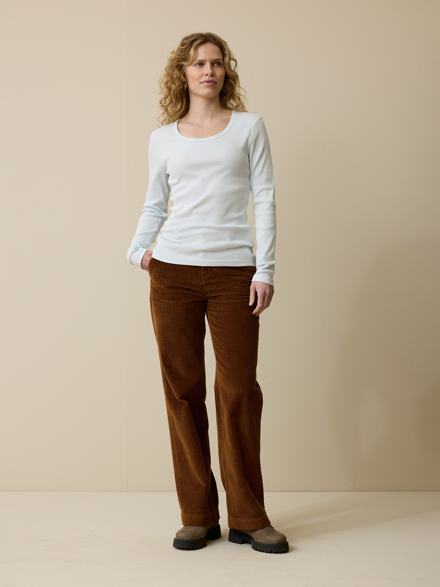 Zeitloses Langarm-Shirt mit feiner Ripp-Struktur, abgerundet mit Rundhalsausschnitt und langen Ärmeln. Die hautfreundliche Kombination aus weicher Baumwolle und temperaturausgleichender Wolle ist die perfekte Mischung für die ersten kalten Tage. Figurumspielend geschnitten, vielseitig kombinierbar – für zuhause oder unterwegs.