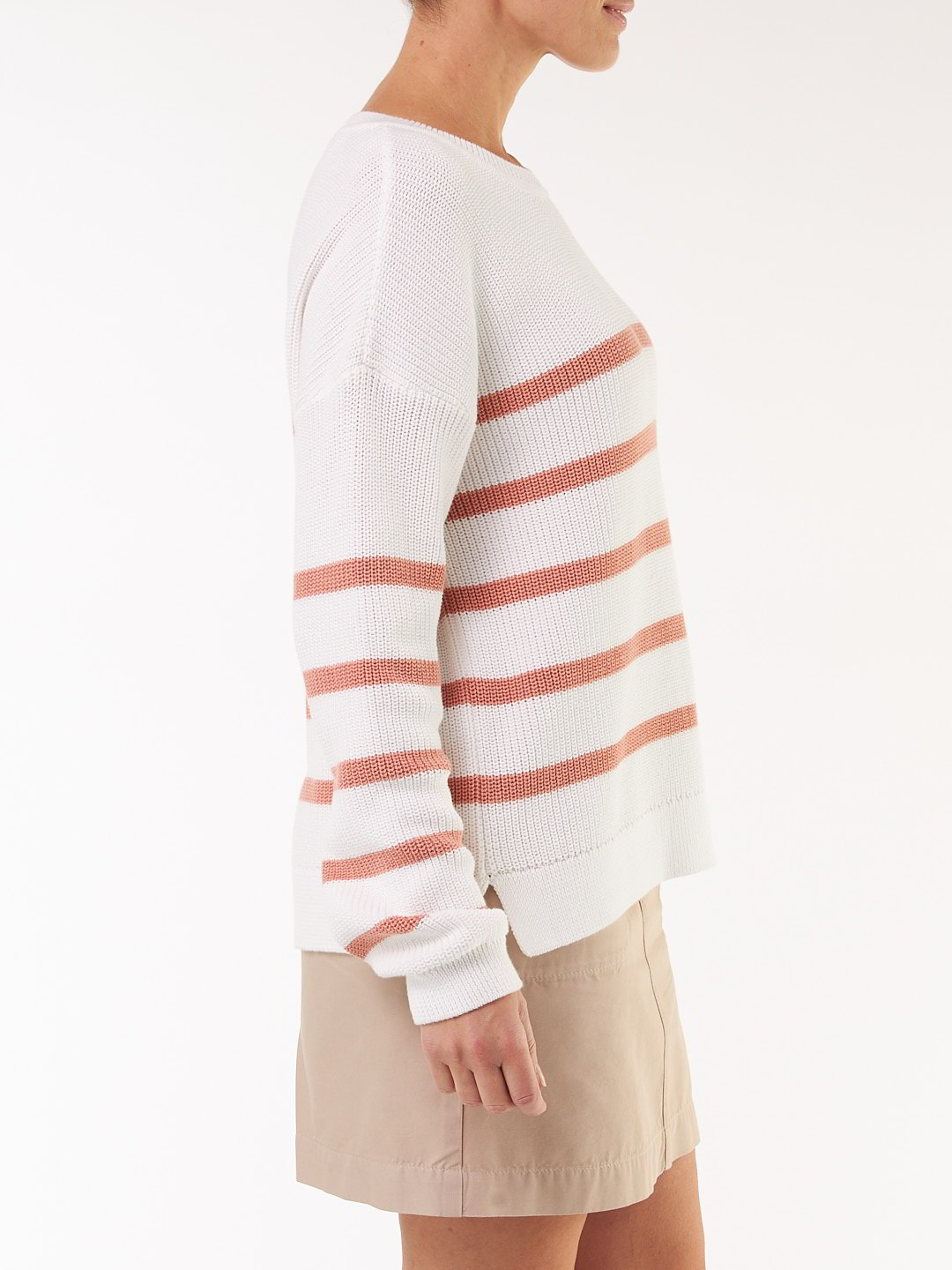 Pullover aus Bio Baumwolle, 47 pfirsich/offwhite ringel, XS, GOTS