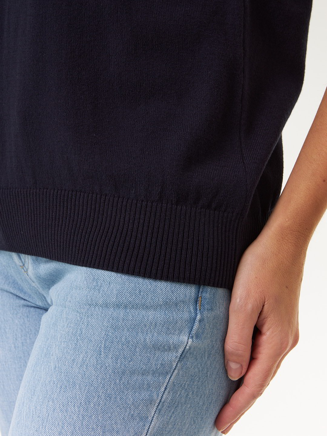 Weicher Strick, moderne StreifenDas ärmellose Stricktop überzeugt durch hochwertige Pima-Baumwolle – sanft zur Haut, anschmiegsam und weich. Überschnittene Schultern und kontrastfarbene Rippbündchen an den Abschlüssen prägen den legeren Schnitt und verleihen dem Top eine moderne, komfortable Silhouette.Schnitt: leger. In Größe S (36/38) ca. 57 cm lang. Unsere Models sind zwischen 175 cm und 177 cm groß und tragen Kleidergröße S.Ökologisch & fair produziertEin schönes Stück Natur, welches wir nur zu gern tragen. Dieses Kleidungsstück entsteht aus Baumwolle kbA und wird nach strengen Richtlinien – wie dem Global Organic Textile Standard – bei unserem Partnerbetrieb gefertigt.Material: 100 % Baumwolle.Materialherkunft: Baumwolle kbA aus der Türkei. Gestrickt in Portugal. Gefertigt in Portugal nach dem GOTS. -