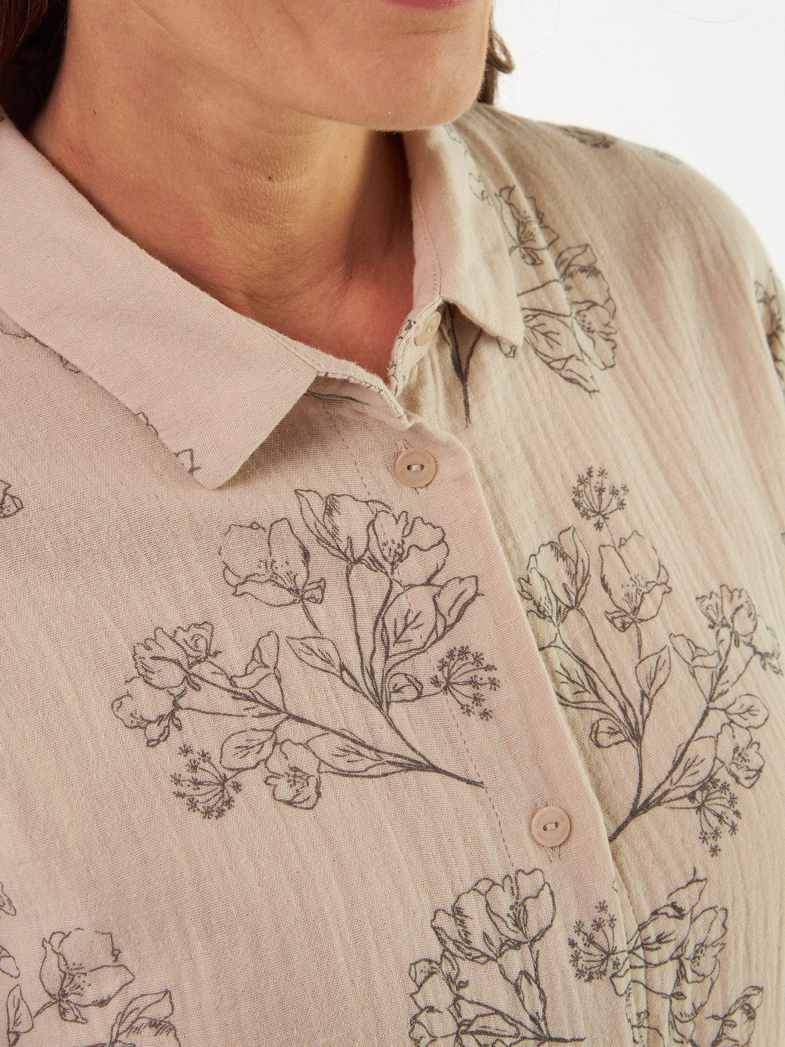 Pyjama-Hemdbluse aus zarter Musselin-Qualität mit feinem Druck: weich, angenehm luftig und leger im Fall. Kragen, durchgehende Knopfleiste und ein sehr weiter Ärmelsaum unterstreichen den entspannten Blusenstil. Der extra lockere Schnitt ist Garant für Komfort und Bewegungsfreiheit – ein besonders unkomplizierter Pyjama für gemütliche Stunden.