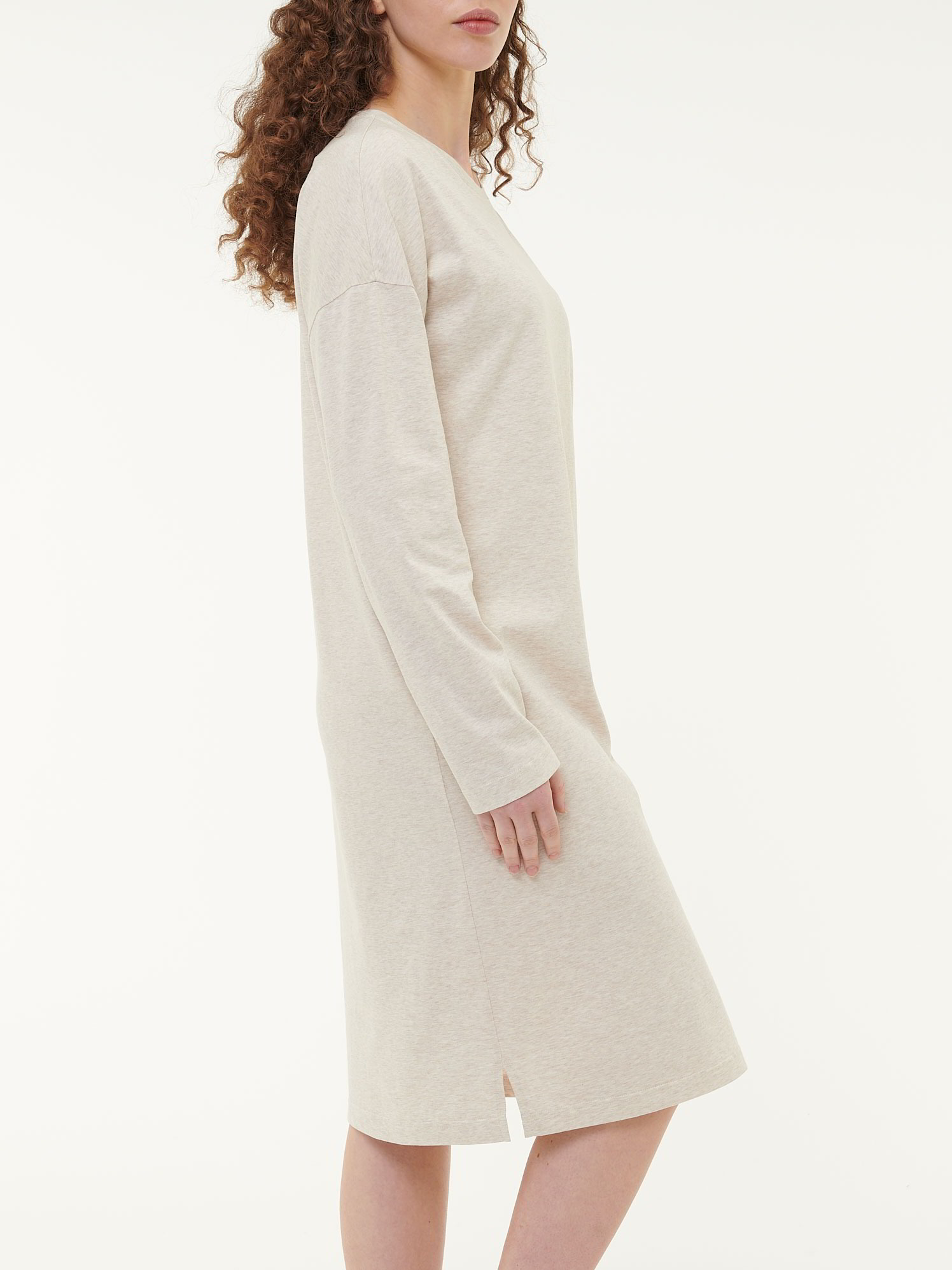 Für noch höheren SchlafkomfortLockeres Nachthemd aus besonders hautfreundlicher Baumwolle: bequem, sanft zur Haut und weich im Griff. Das Nachthemd in Single-Jersey-Qualität hat lange Ärmel, überschnittene Schulterpartien und einen Rundhalsausschnitt mit 1x1-Rippbündchen. Weitere Details: Seitenschlitze am Saum.Schnitt: sehr leger/kniebedeckend. In Größe S (36/38) ca. 102 cm lang. Unsere Models sind zwischen 175 cm und 177 cm groß und tragen Kleidergröße S.Ökologisch & fair produziertEin schönes Stück Natur, welches wir nur zu gern tragen. Dieses Kleidungsstück entsteht aus Baumwolle kbA und wird nach strengen Richtlinien – wie dem Global Organic Textile Standard – bei unserem Partnerbetrieb gefertigt.Material: 100 % Baumwolle.Materialherkunft: Baumwolle kbA aus der Türkei. Gewirkt in Griechenland. Gefertigt in Nordmazedonien nach dem GOTS. -