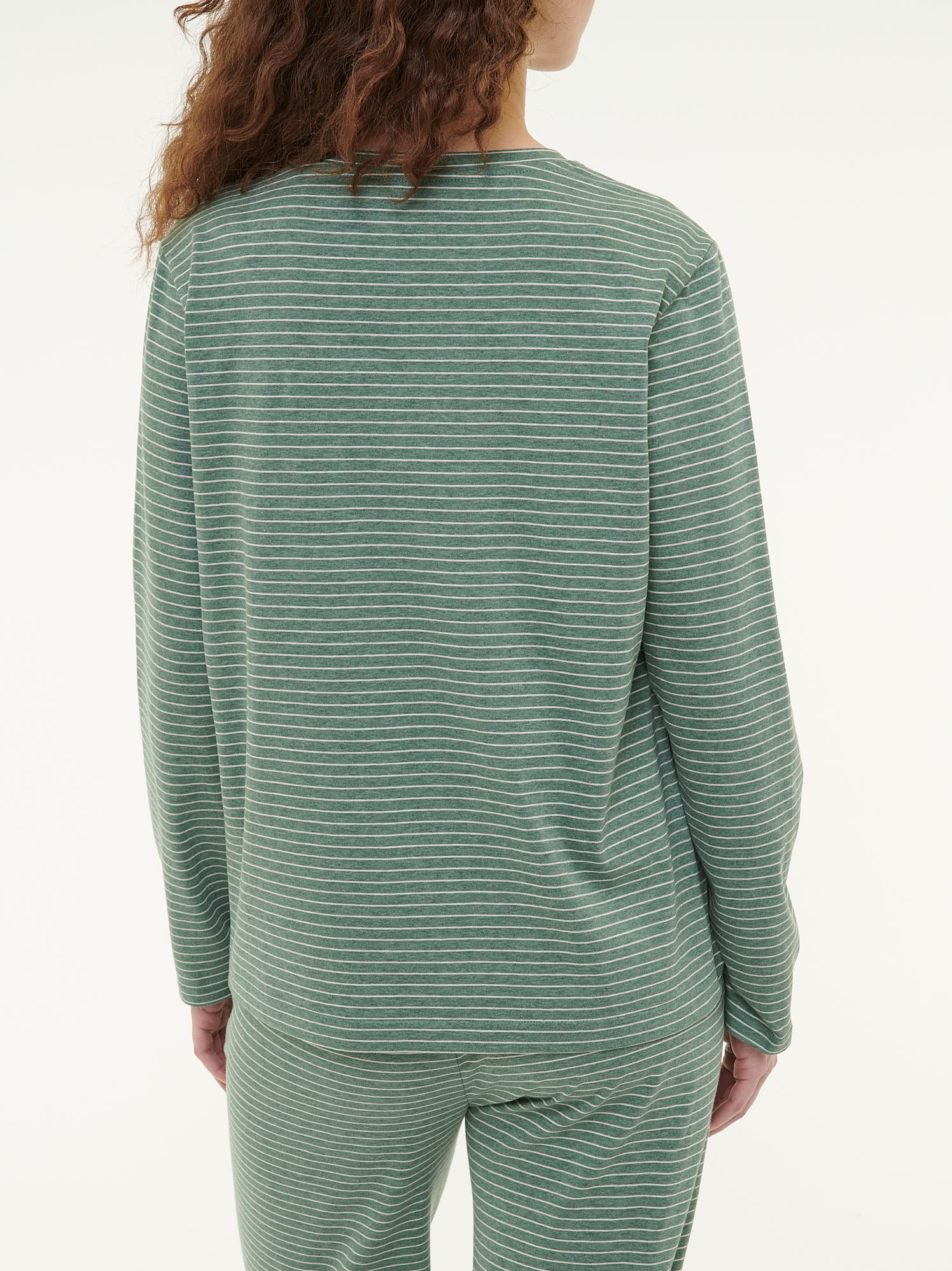 Schlafshirt aus Bio-Baumwolle, 96 eucalyptus/natur melange ringel, S, GOTS
