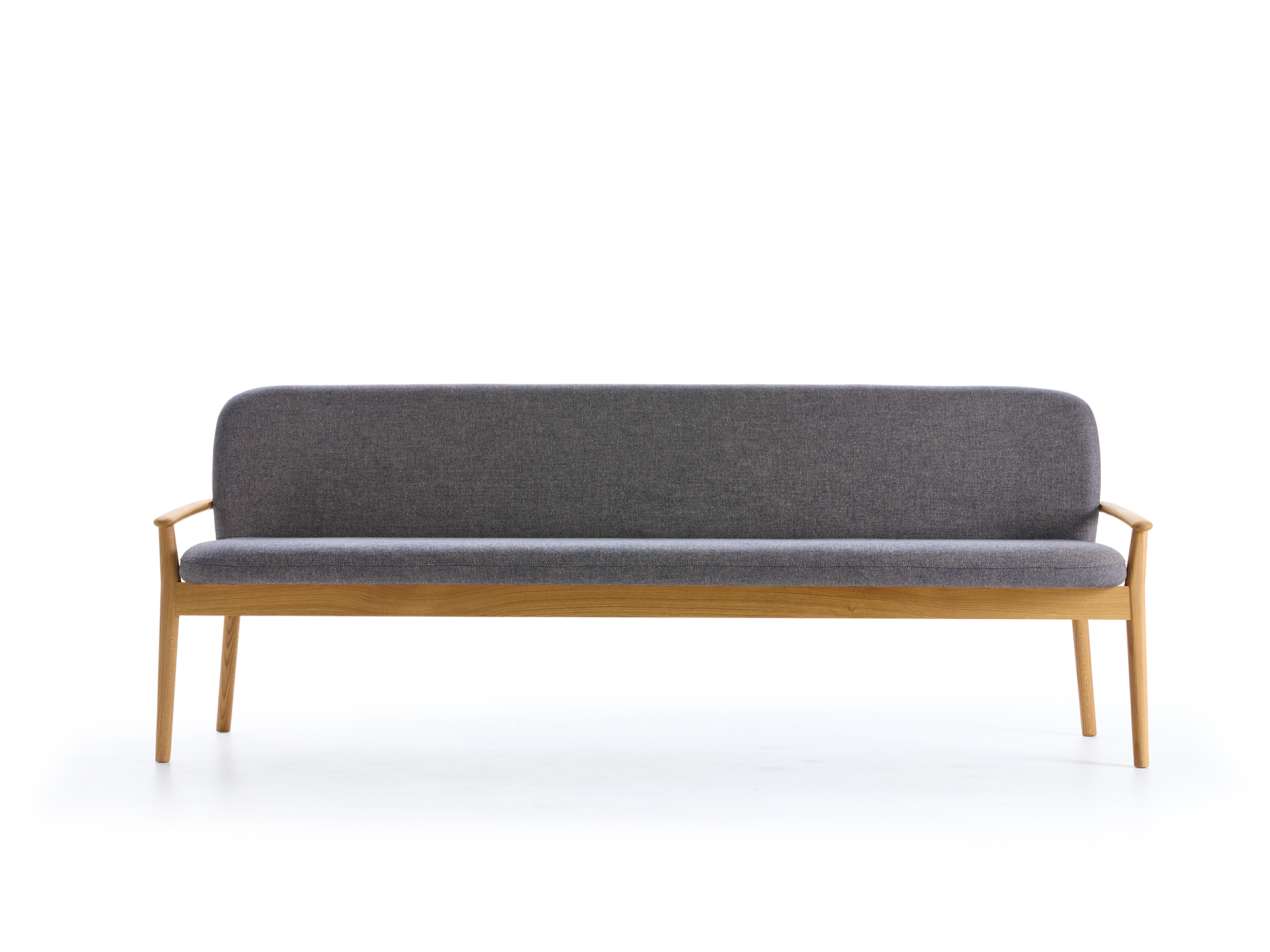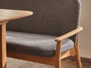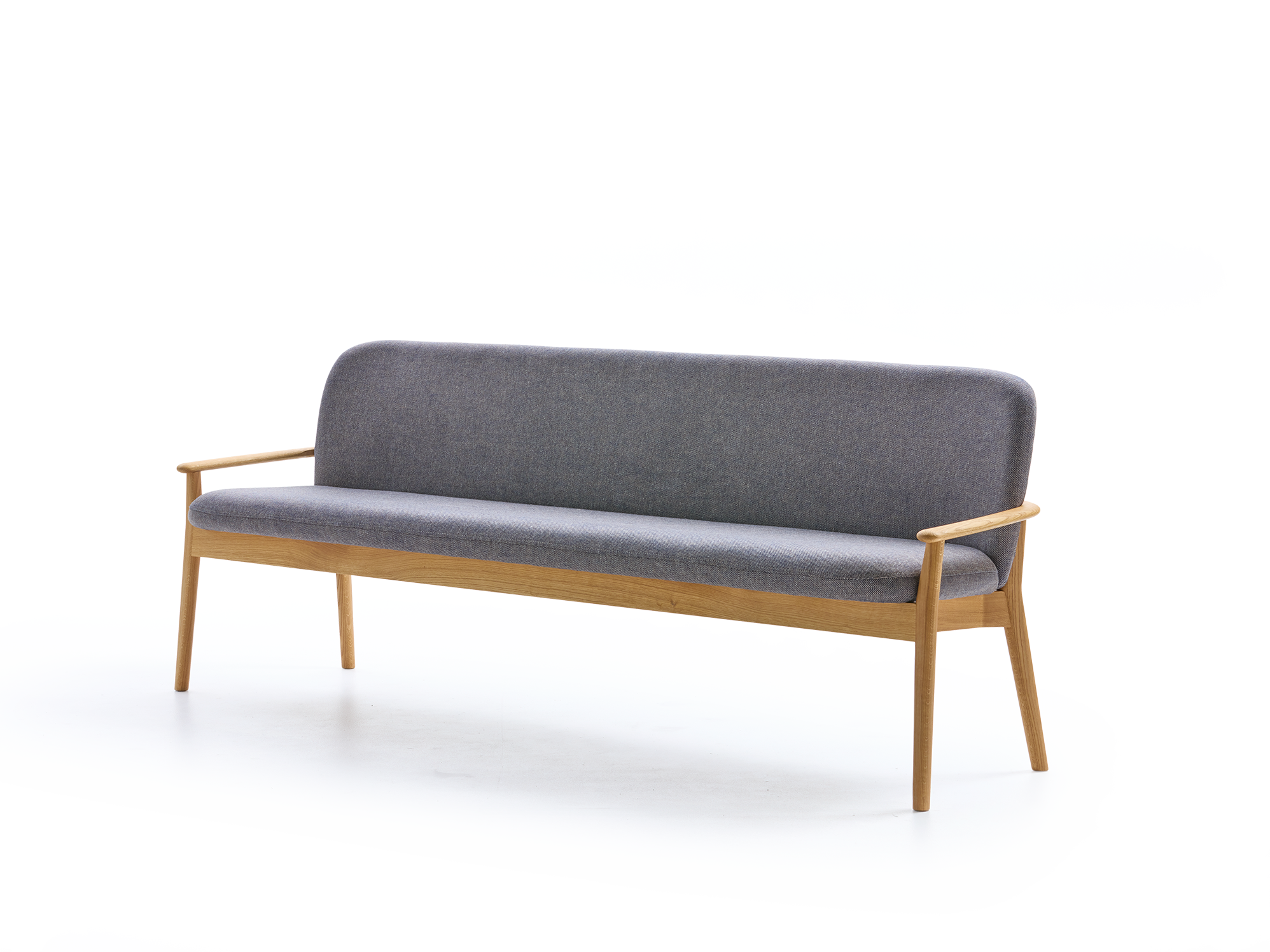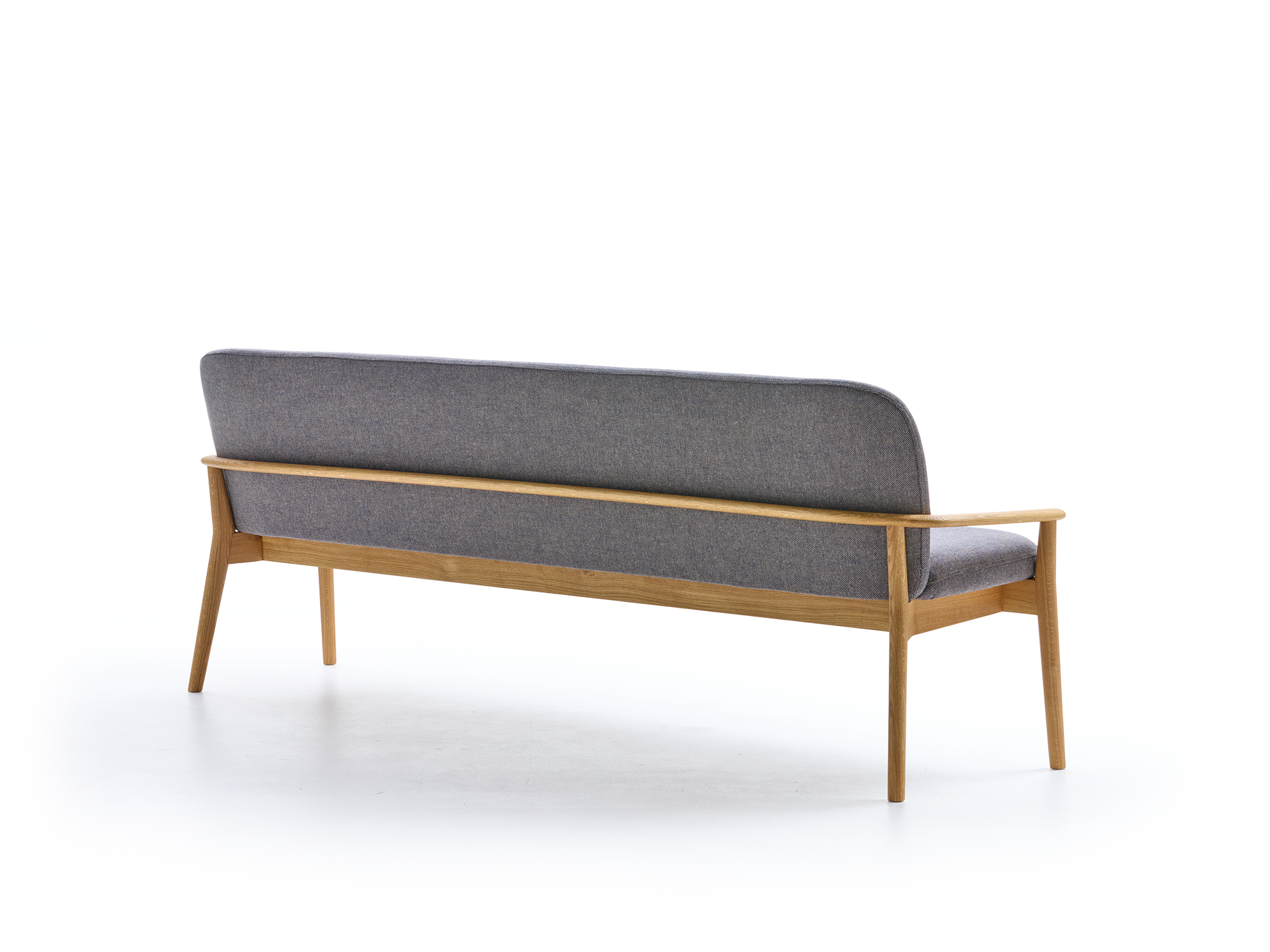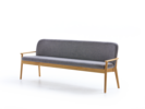 Kühner SchwungDie Bank Kilian ist ein in ästhetischer, funktioneller und handwerklicher Hinsicht sehr anspruchsvolles Möbel. Sie verbindet hohen Sitzkomfort mit zeitgemäß klaren, zurückhaltend eleganten Formen. Bei aller gebotenen Stabilität tritt die Bank in Bezug auf Proportionen, Holz- und Polsterstärken geradezu schlank und feinsinnig auf. Angenehmer Nebeneffekt: Sie lässt sich ohne großen Aufwand im Raum bewegen.Der parabelförmige (!) Querschnitt der Vorderbeine ist ein kleines, feines Designmerkmal, das die Bank mit den Beinen der anderen Kilian-Möbel gemeinsam hat.Die Polsterung ist getragen von einem optisch weichen, "handschmeichlerisch" sanft verrundeten Massivholzrahmen, der auch die Rückenlehne vollkommen umfängt und in einem kühnen Schwung in die Armlehnen übergeht. Diese sind relativ niedrig angesetzt, erleichtern damit den "Zugang" bzw. "Einstieg" zur Bank, bilden einen schönen seitlichen Abschluss und können als Auflage/Stütze für ein Kissen dienen.Im Bereich der Sitzfläche ist der Massivholzrahmen mit Hanfgurten bespannt und dann sandwichartig mit Kokoslatex, Naturlatex und Schurwollfilz gepolstert. Im Bereich der Rückenlehne findet sich derselbe Polsteraufbau, gestützt von einem Kern aus leichtem, aber verwindungsfestem Pappelsperrholz. All das zusammen verleiht der Bank einen fest-elastischen Sitzkomfort.Die bequeme Polsterung wird in unserer Produktionsstätte im Almtal (OÖ) mit dem Möbelstoff Ihrer Wahl (IVN NATURTEXTIL BEST-zertifiziert) in aufwendiger Handarbeit bezogen und mit sorgfältigen Nähten verarbeitet.Massivholzrahmen mit fix verleimten, metallfreien Holzverbindungen; leichte, verwindungsfeste Sperrholzplatte für den Kern der Rückenlehne. Holz aus nachhaltiger, mitteleuropäischer Forstwirtschaft, handwerklich sorgfältig verarbeitet, Oberflächen mit natürlichem, lösemittelfreiem Pflegeöl eingelassen. -