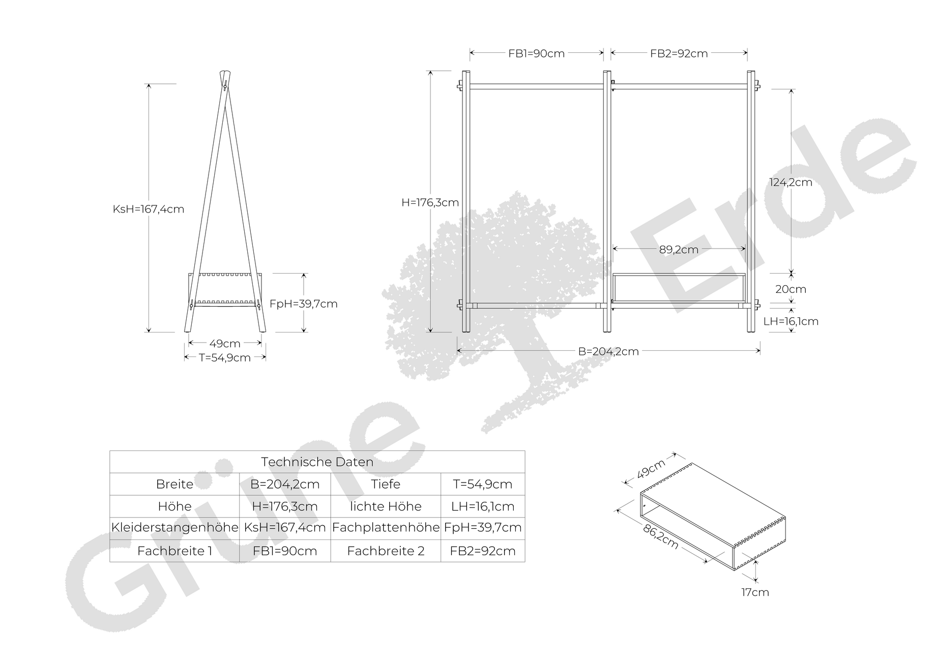 Wir liefern den Kleiderständer zerlegt im Flatpack zur Selbstmontage. Die Teile werden von Hand zusammengesteckt: keine Schrauben, kein Werkzeug! Bitte beim Zusammenbau unbedingt auf die richtige Reihenfolge der Montageschritte und die Verwendung der jeweils dafür vorgesehenen Bauteile achten (siehe Montageanleitung bzw. Video). -