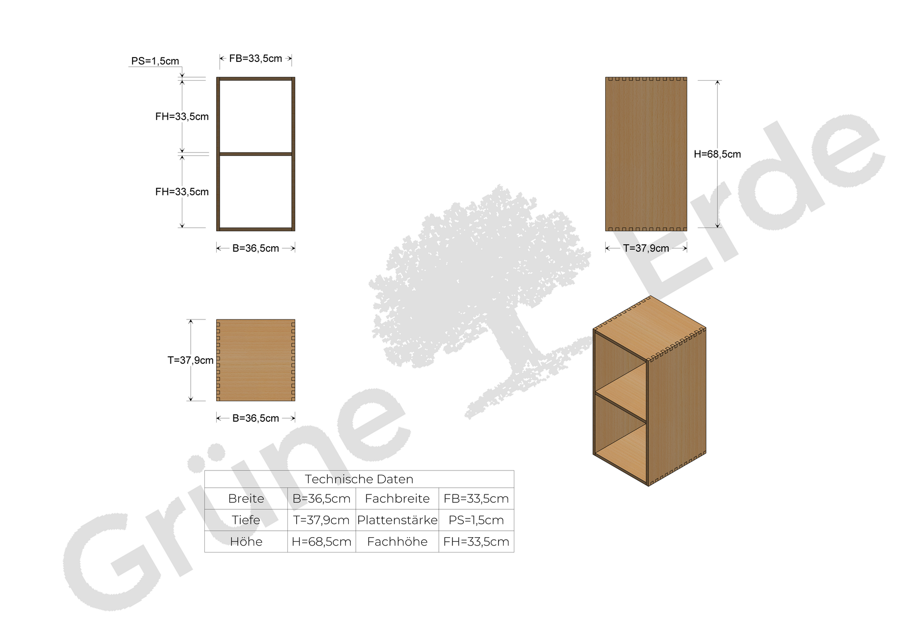 Regal Yunit Pur, B 36,5 x T 38 x H 71,5cm, 1 x 2 Fächer, Buche