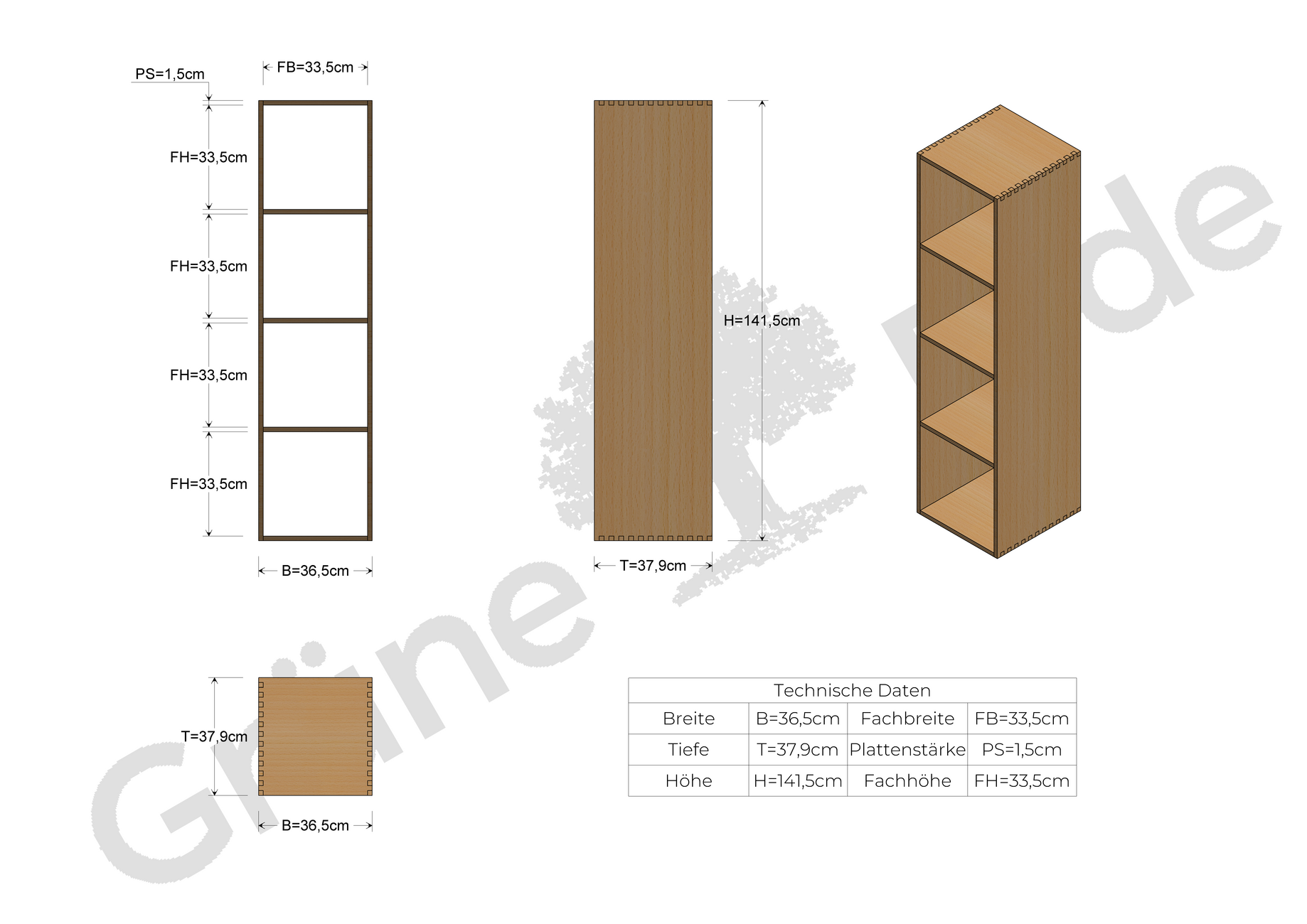 Regal Yunit Pur, B 36,5 x T 38 x H 141,5cm, 1 x 4 Fächer, Buche