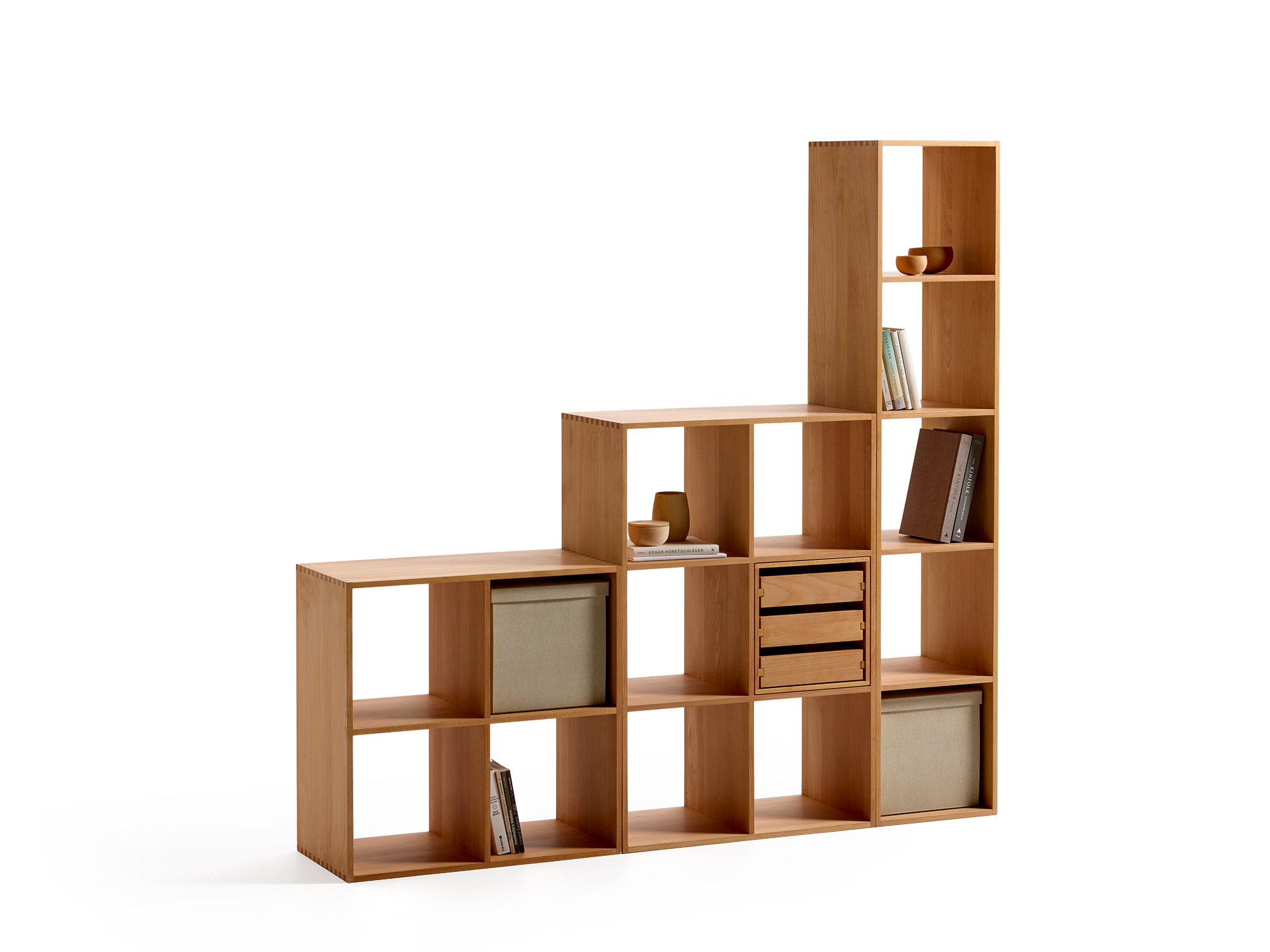Regalserie Yunit PurEine Serie von 6 unterschiedlichen Yunit-Regalen mit 2 bis 6 Fächern – jeweils angepasst an den Stauraumbedarf bei Ihnen Zuhause, den verfügbaren Aufstellplatz und Verwendungszweck.Yunit ist in allen Wohnbereichen willkommen und bietet Platz für Bücher, Zeitschriften, Deko-Objekte, Zimmerpflanzen, Ordner, Körbe, Boxen: eben für alles, was schön verstaut werden soll.Die ausschließliche Verwendung von Massivholz und traditionellen Holzverbindungen (Fingerzinken) verleihen diesem Regal höchstmögliche Solidität und Stabilität.Yunit kann sowohl horizontal als auch vertikal verwendet werden. Es kann auf dem Boden stehen oder an der Wand hängen. In diesem Fall bitte Aufhänge-Sets extra bestellen: Für dieses Regal mit 2 Fächern ist 1 Aufhänge-Set (aus Holz) erforderlich.Filzgleiter zum Aufkleben an der Unterseite werden mitgeliefert – zur Schonung des Bodens, wenn das Regal aufgestellt wird.Material & Verarbeitung1,5 cm Massivholz, je nach Wahl Buche oder Eiche aus nachhaltiger Forstwirtschaft in Mitteleuropa, keine Metall- und Kunststoffteile. Die Oberfläche ist von Hand mit natürlichem, lösemittelfreiem Pflegeöl eingelassen.Seitenteile und Fachböden sind über handwerksgerechte Fingerzinken bzw. Holzdübel fix miteinander verleimt. Demnach ist das Regal nicht zerlegbar.Gut zu wissenDie Regalfächer nehmen auch klassische Büroordner auf sowie unsere Schubladenbox und Aufbewahrungsbox Yunit Pur – passgenau mit Schattenfuge.Schön zu wissenDieses Regal mit dem programmatischen Namenszusatz "Pur" gehört zu unserer gleichnamigen Kollektion und spiegelt deren Grundidee wider: klar, schlicht, einfach, funktionell, auf das Wesentliche konzentriert, zu 100 % aus Naturmaterialien gefertigt, attraktiver Preis.Der Name Yunit ist abgeleitet vom englischen "unit" = Einheit, Modul: eine Anspielung auf den konstruktiven Aufbau des Regals. -