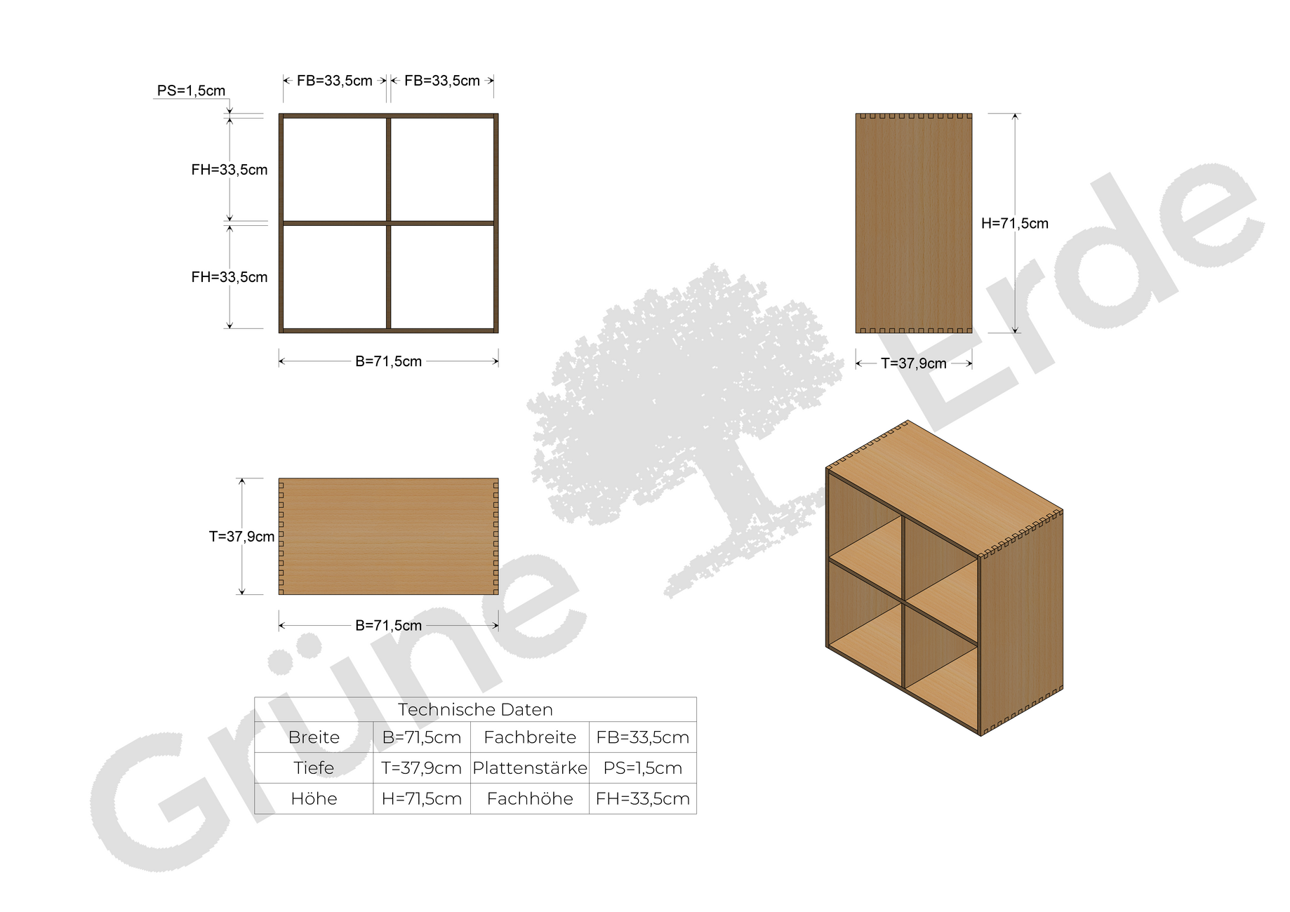Regal Yunit Pur, B 71,5 x T 38 x H 71,5cm, 2 x 2 Fächer, Eiche