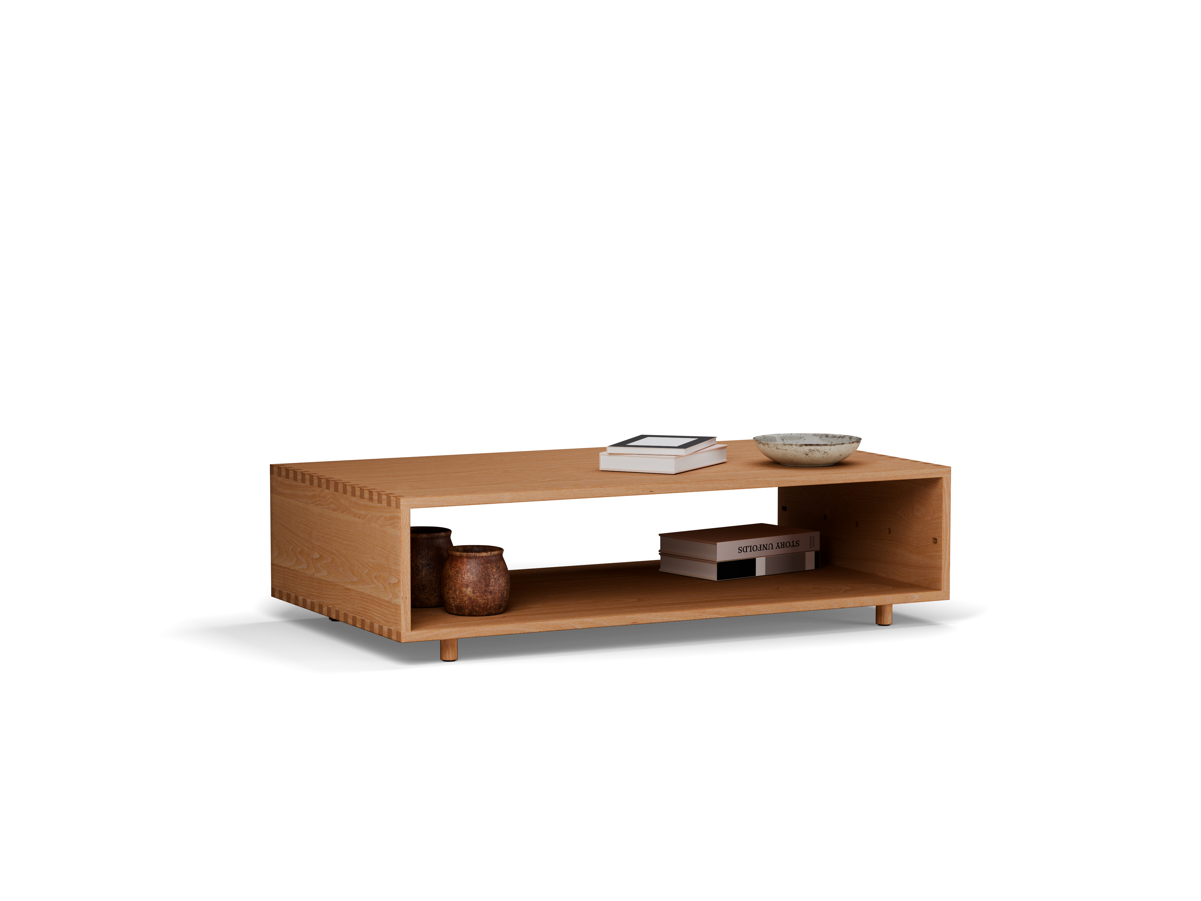 Jukai ist in Massivholz sehr stabil ausgeführt und mit optisch attraktiven, funktionell dauerhaften Fingerzinken als Eckverbindungen versehen. Aufgrund dieser Solidität kann der Tisch auch als informelle Sitzgelegenheit dienen.