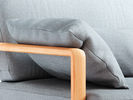 Der elegante, schlanke, feinsinnige Sofarahmen aus fix verleimtem Massivholz – mit sanften, verrundeten, fließenden Übergängen und Verbindungen – umfängt die Polsterelemente relingartig und gibt dem Sofa auch eine reizvolle Rückenansicht.-