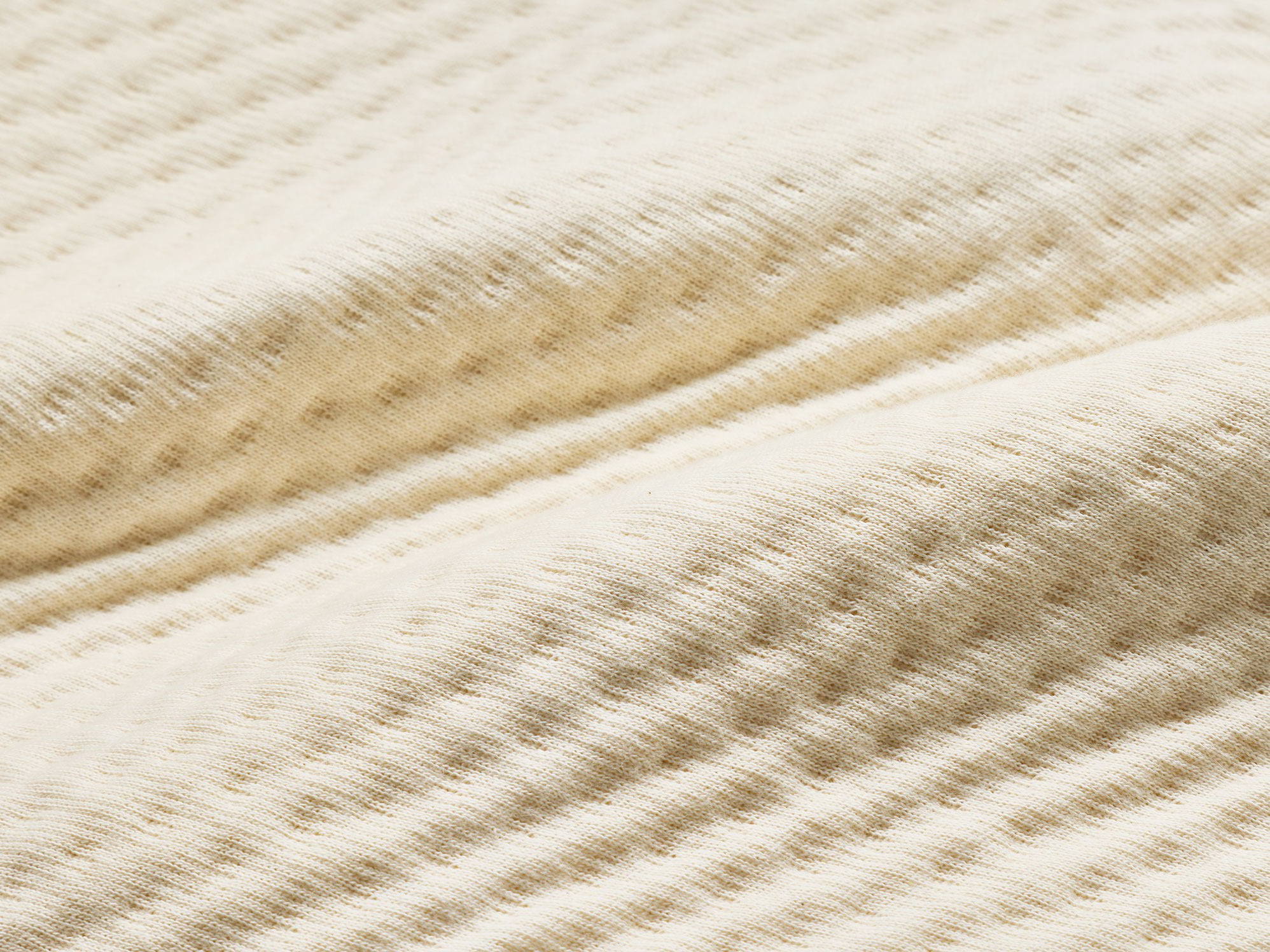 Besonders dicke und saugfähige Auflage aus elastischem Baumwoll-Doppelstrickstoff. Baumwolle aus kbA: Der Stoff ist aus einem Garn doppellagig gestrickt (nicht gewebt). So bekommt die Auflage mehr Volumen und schmiegt sich hervorragend an die Matratze an. Die Ränder sind sauber mit Schrägband eingefasst. Mit elastischen Naturlatexbändern an den Ecken – zum einfachen und schnellen Festmachen der Auflage an der Matratze. Ausschließlich aus pflanzlichen Fasern und waschbar, daher auch für (Tierhaar-) Allergiker gut geeignet.