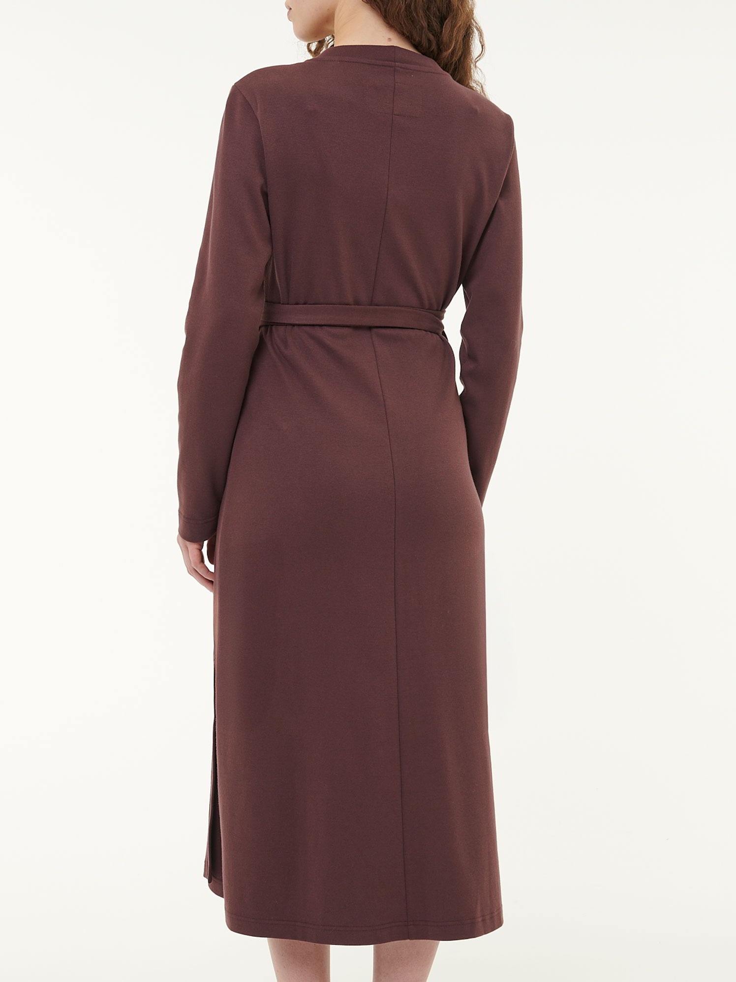Schlicht im Look. Sanft zur Haut.Wickelkleid aus weicher Sweat-Qualität: Gefertigt aus feinem Interlock-Jersey für ein angenehmes Tragegefühl mit angenehm-fester Textur. Der figurumspielende Fit – abgerundet mit langen Ärmeln und der Wickelverschluss mit Blendenverarbeitung und Bindebändern V-Ausschnitt – sorgt für eine feminine Silhouette und einen entspannten Look – ein Everyday Piece zum Wohlfühlen. Mit Bindegürtel.Schnitt: figurumspielend/maxi. Innenbeinlänge in Größe 36 ca. 120 cm. Unsere Models sind zwischen 175 cm und 177 cm groß und tragen Kleidergröße 36.Ökologisch & fair produziertDieses Kleidungsstück entsteht aus Baumwolle kbA und Wolle kbT. Es wird nach strengen Richtlinien – wie dem Global Organic Textile Standard – und nach größter ökologischer Sorgfalt bei unserem Partnerbetrieb gefertigt.Material: 100 % Baumwolle.Materialherkunft: Baumwolle kbA aus der Türkei. Gewirkt in Litauen. Gefertigt in Litauen nach dem GOTS. -