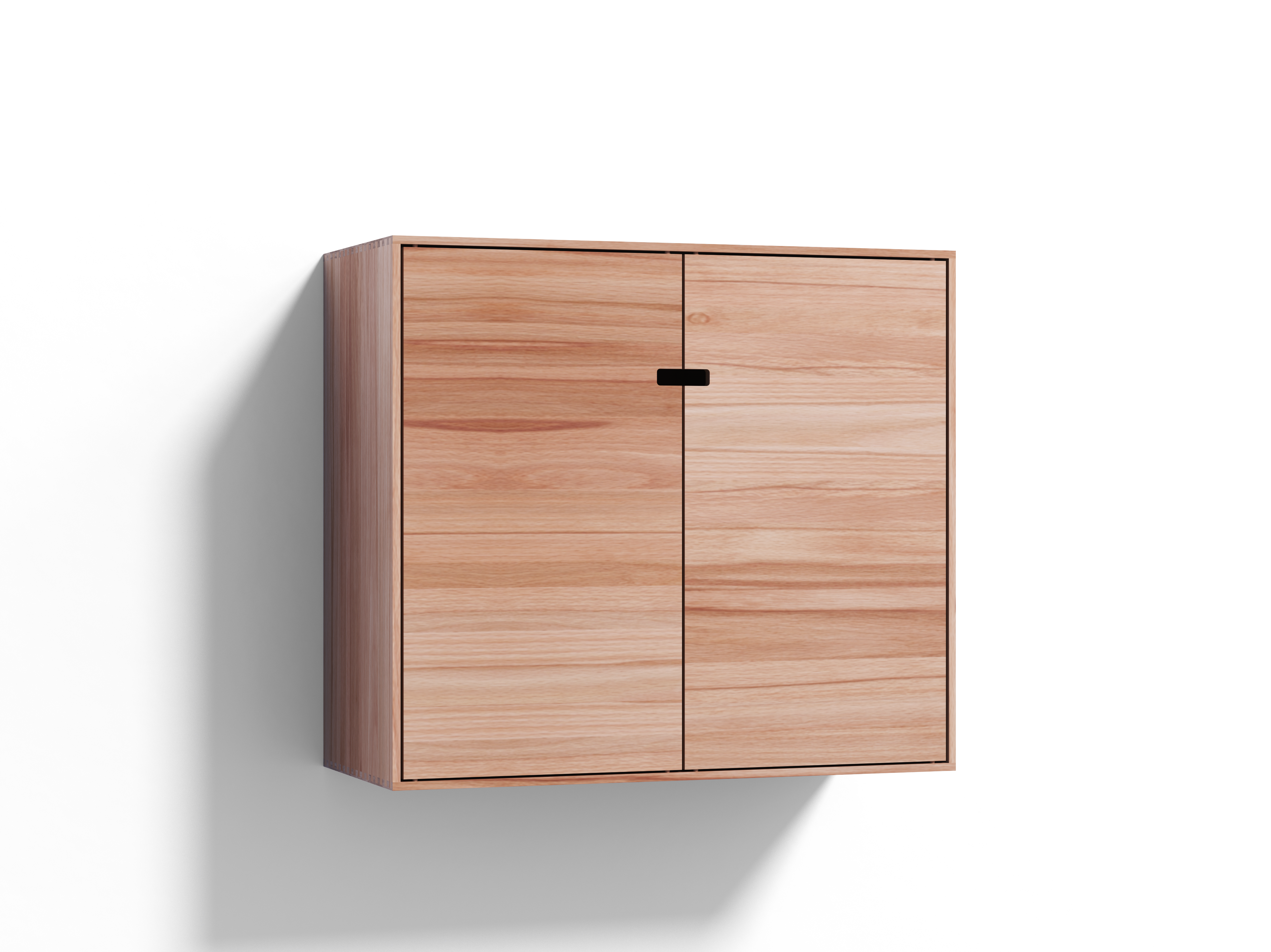 Schöne, über beide Türen verlaufende lebhafte Maserung, die Wandstärke ist mit rd. 12 mm überraschend dünn. Das Problem: die 2 Grifflöcher sind leider etwas verschoben, was mich jedesmal beim Hinsehen stört - die Höhendifferenz beträgt etwa 1,5 mm!