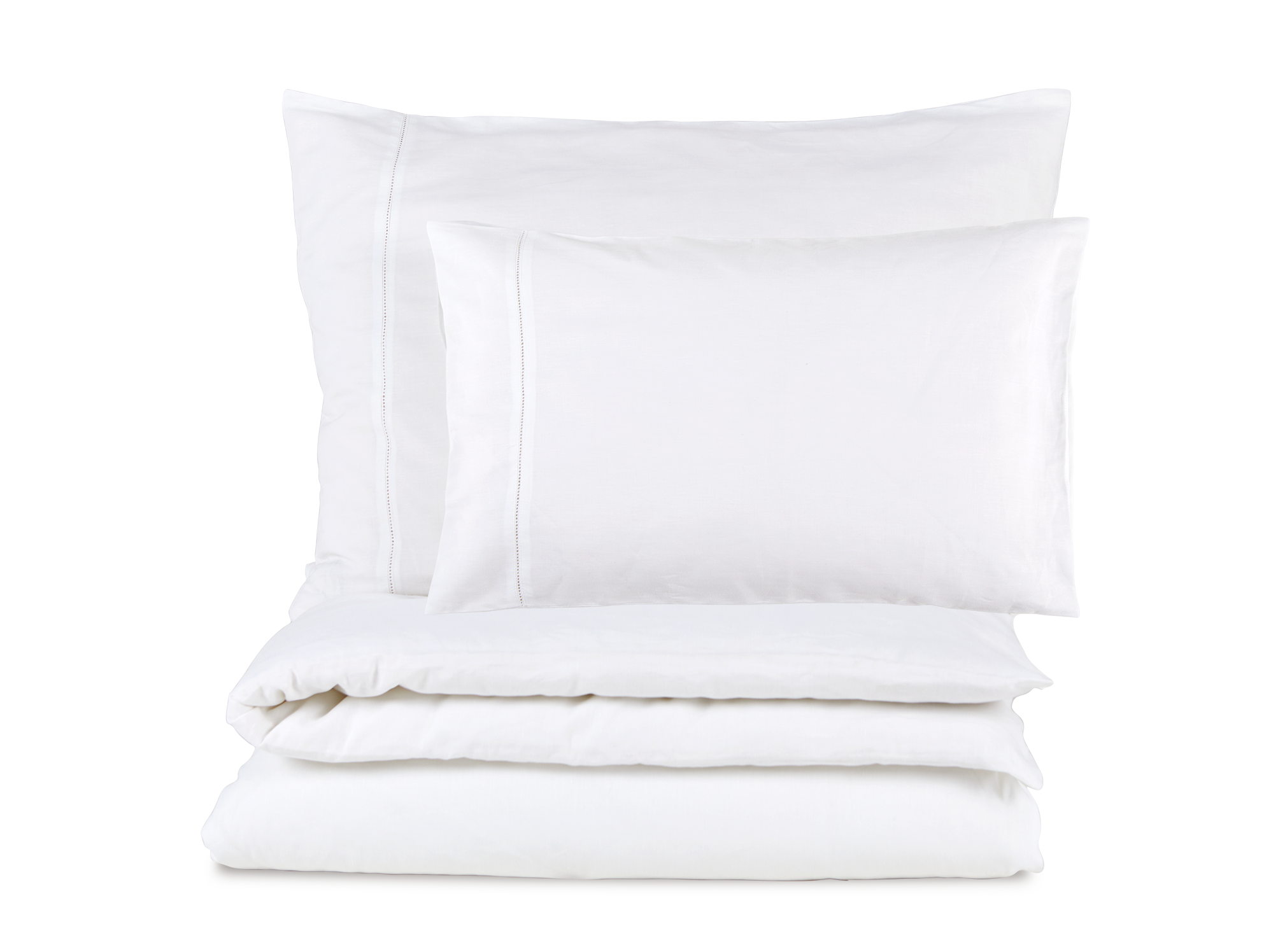 Bei Halbleinenstoffen sind die längs verlaufenden Kettfäden des Gewebes aus Baumwolle, die quer dazu eingetragenen Schussfäden aus Leinen. Insgesamt muss der Leinenanteil mindestens 40 % des Gesamtgewichts betragen.Der "Einsprung" – warum unsere Bettwäsche größer gefertigt wird