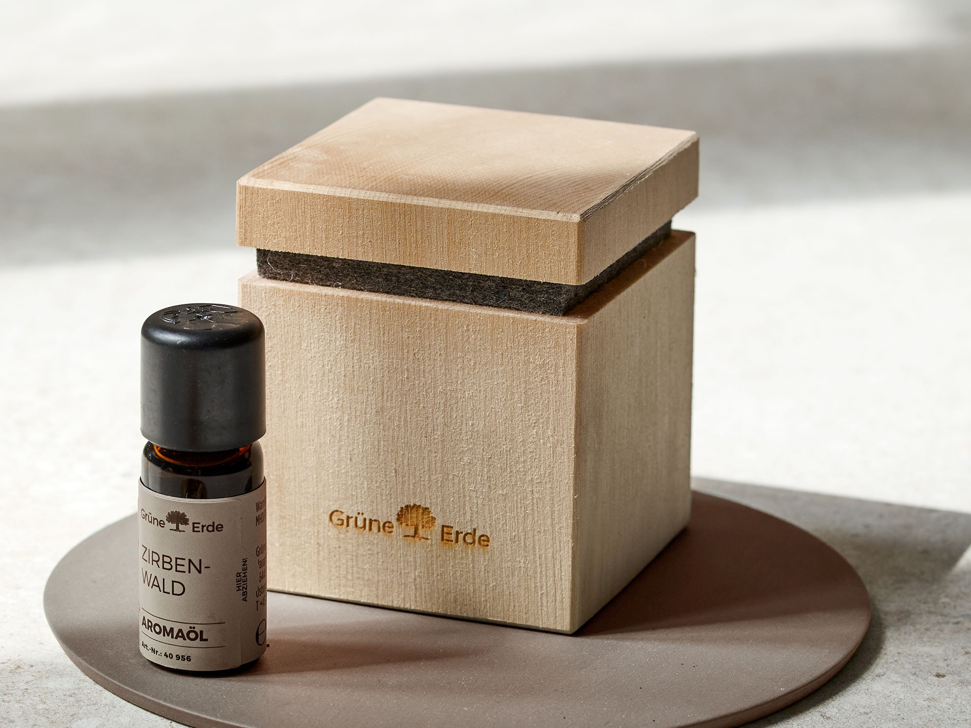 Zirbenduftspender mit Filz und Holzgewinde für Zirbenöl, 7 cm x 7 cm x 8,5 cm https://grueneerde.com/de/produkte/sale/sale-wellness-pflege/zirbenduftspender-mit-filz-und-holzgewinde-fuer-zirbenoel/ge-p-49487.html Grüne Erde <div><div>Dieser einzigartige Zirbenduftspender besitzt einen integrierten Filz, welcher als Aufnahmestoff für das ZirbenÖl dient und ein ... /media/Image/stripAndInterlace-legacy/.fmsCcGqX/Image-64422/49487-firbenduftspender-frei.png 49487 49487