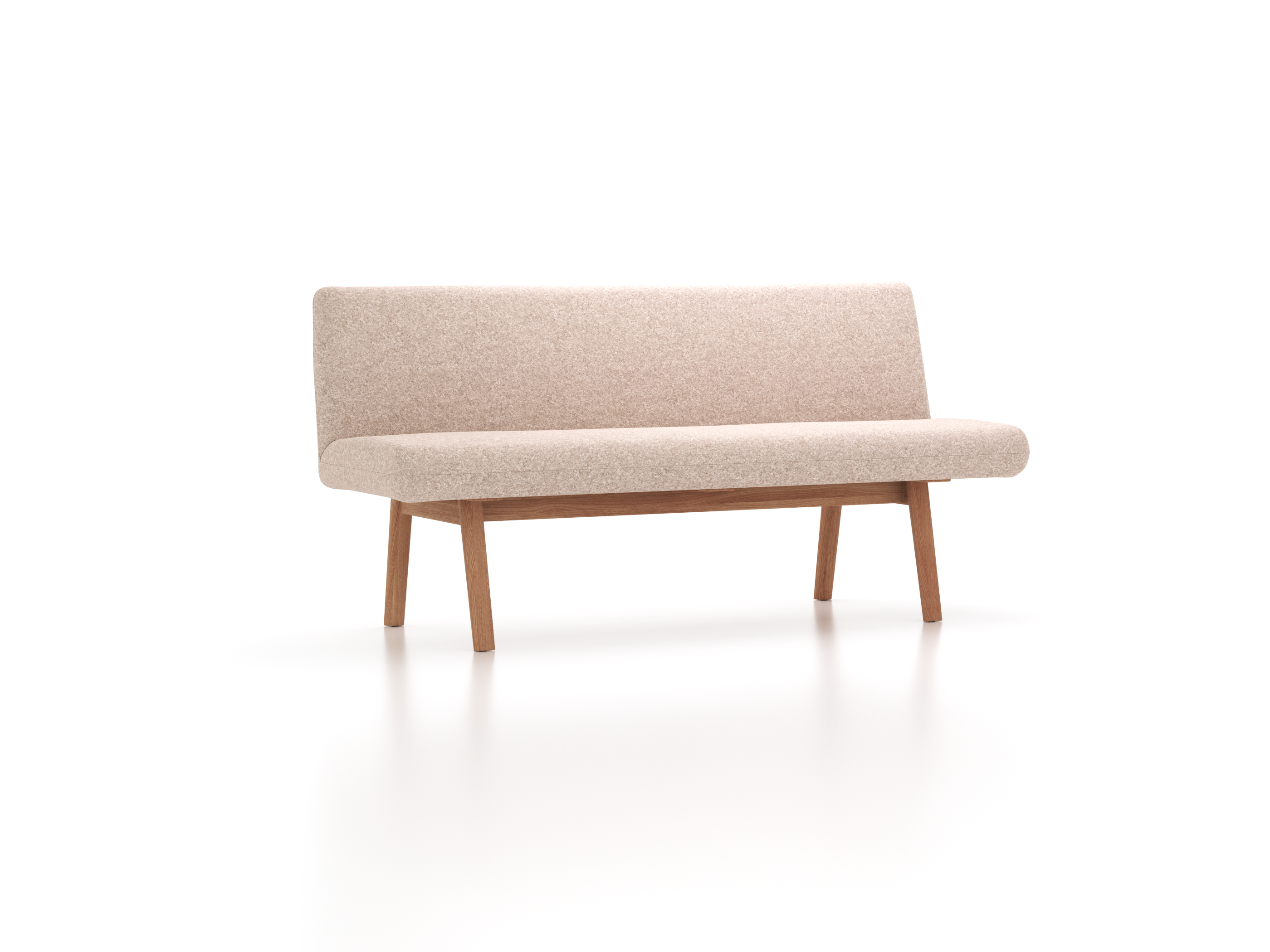 Getragen wird der Polsterteil von einem Fußgestell mit gerundeten Ecken und Kanten. Beide Teile sind von wieder lösbaren Holzsteckverbindungen fest zusammengehalten. Die nach innen versetzte Position der Bankbeine erleichtern die Bewegungsfreiheit der am Tisch Sitzenden. Schönes Designdetail: Die nach oben verlängerten Hinterbeine der Bank überlappen die Rückenlehne und stützen diese gleichsam. So macht Ketil auch freistehend gute Figur.