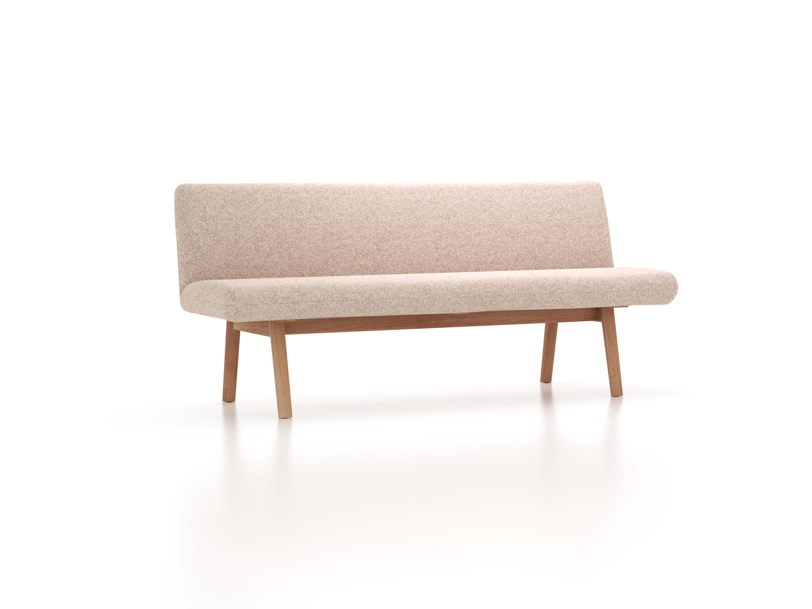 Getragen wird der Polsterteil von einem Fußgestell mit gerundeten Ecken und Kanten. Beide Teile sind von wieder lösbaren Holzsteckverbindungen fest zusammengehalten. Die nach innen versetzte Position der Bankbeine erleichtern die Bewegungsfreiheit der am Tisch Sitzenden. Schönes Designdetail: Die nach oben verlängerten Hinterbeine der Bank überlappen die Rückenlehne und stützen diese gleichsam. So macht Ketil auch freistehend gute Figur.