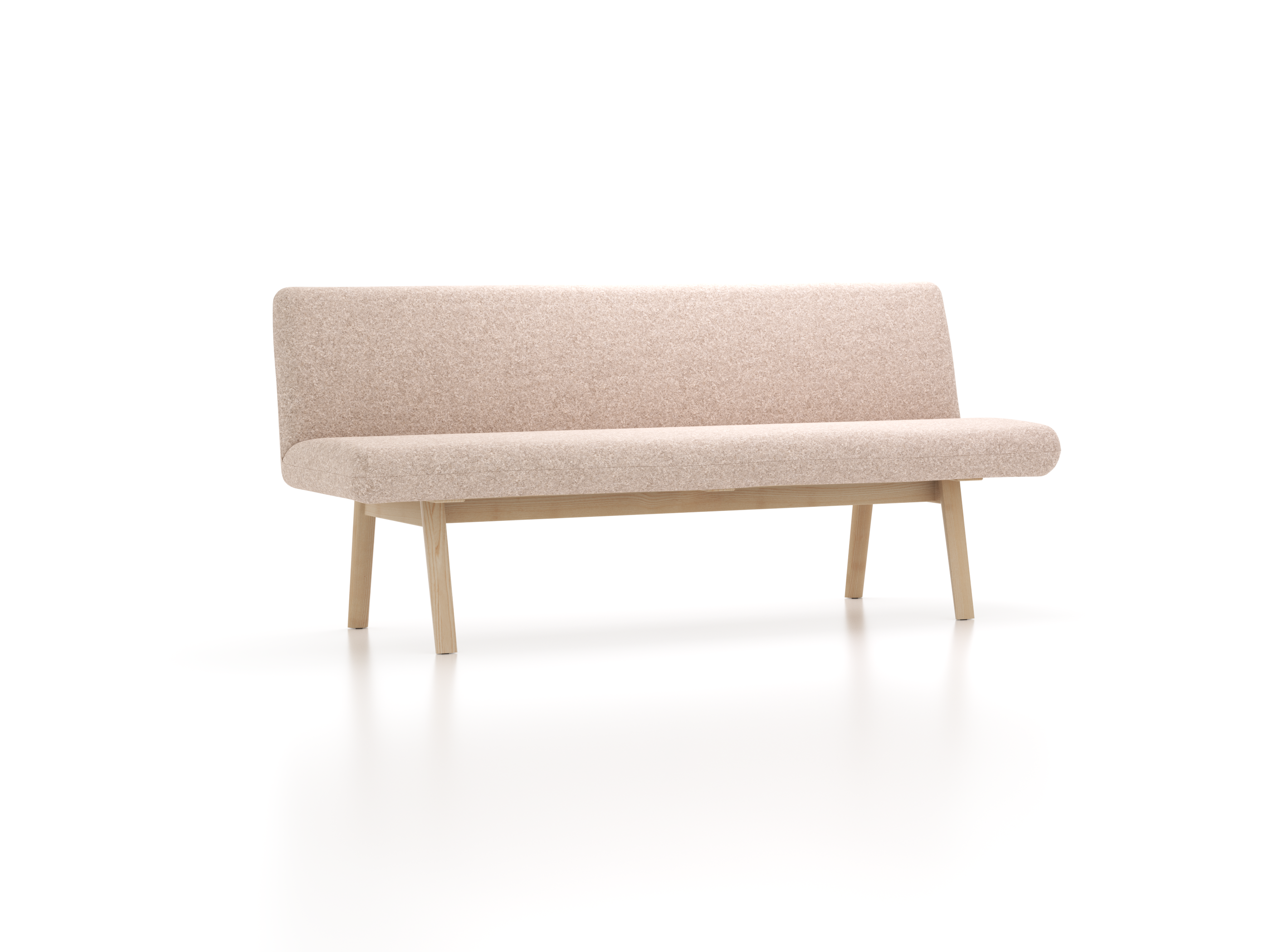 Getragen wird der Polsterteil von einem Fußgestell mit gerundeten Ecken und Kanten. Beide Teile sind von wieder lösbaren Holzsteckverbindungen fest zusammengehalten. Die nach innen versetzte Position der Bankbeine erleichtern die Bewegungsfreiheit der am Tisch Sitzenden. Schönes Designdetail: Die nach oben verlängerten Hinterbeine der Bank überlappen die Rückenlehne und stützen diese gleichsam. So macht Ketil auch freistehend gute Figur.