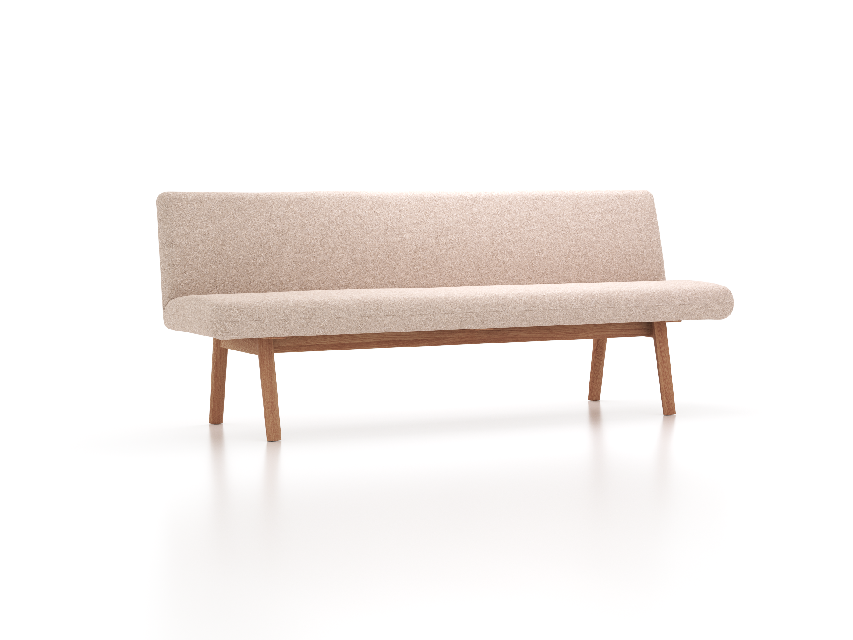 Getragen wird der Polsterteil von einem Fußgestell mit gerundeten Ecken und Kanten. Beide Teile sind von wieder lösbaren Holzsteckverbindungen fest zusammengehalten. Die nach innen versetzte Position der Bankbeine erleichtern die Bewegungsfreiheit der am Tisch Sitzenden. Schönes Designdetail: Die nach oben verlängerten Hinterbeine der Bank überlappen die Rückenlehne und stützen diese gleichsam. So macht Ketil auch freistehend gute Figur.