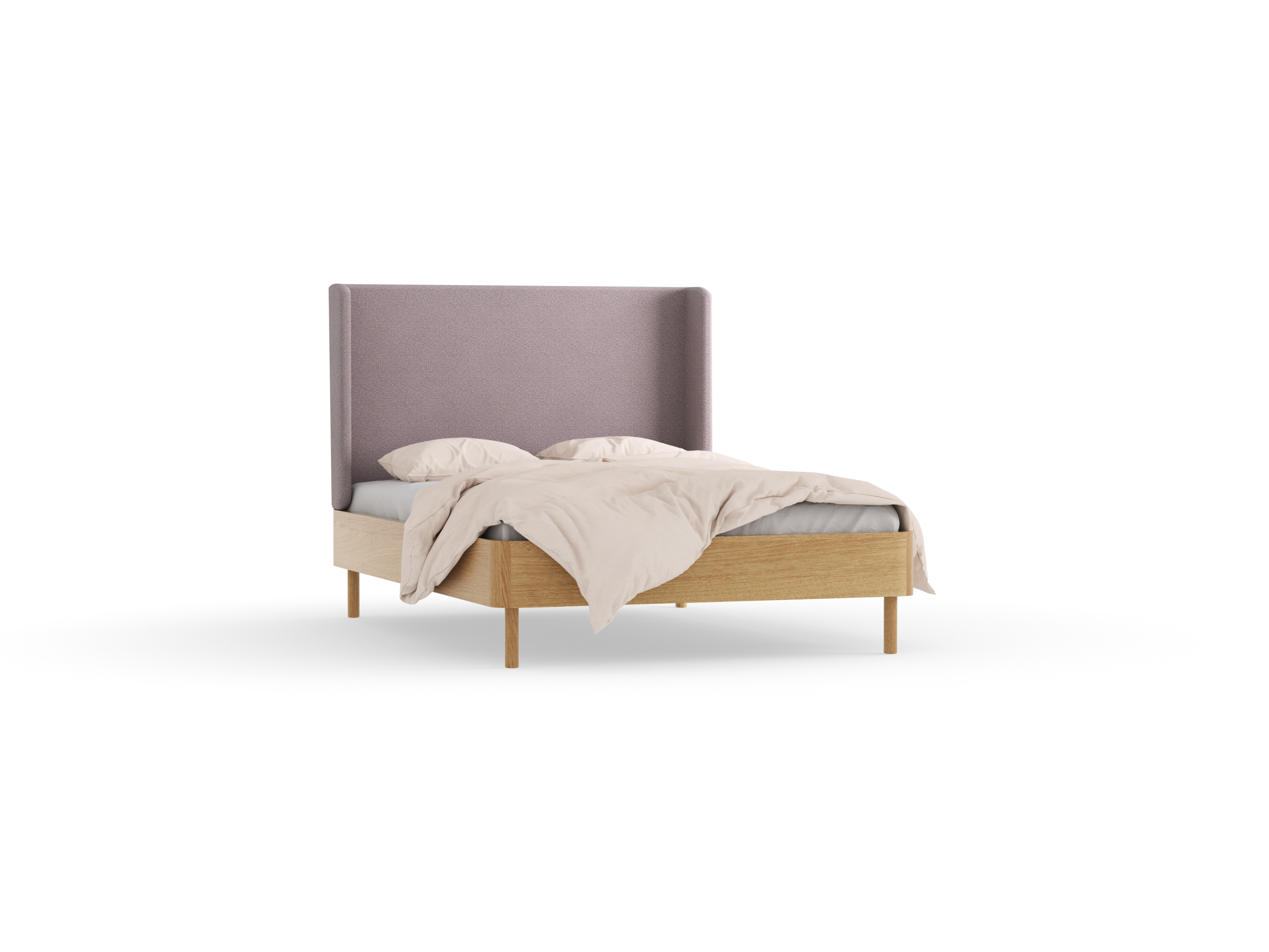 Bett Tonda, mit hohem Polsterbetthaupt, 140 x 200, Wollstoff Elverum Torfblau (82), Eiche