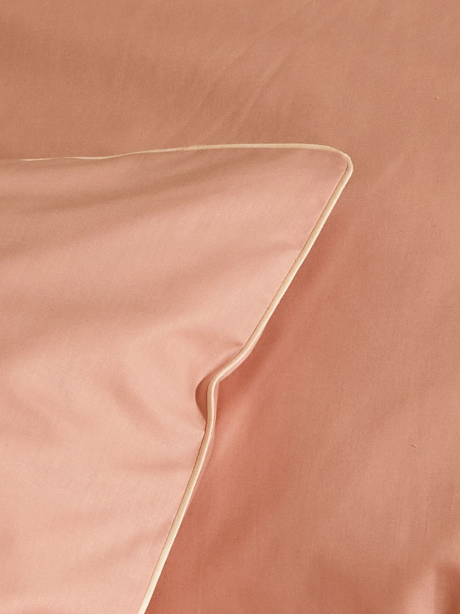 Die Bettwäsche Edna begeistert mit ihrer besonderen Leichtigkeit und edler Haptik aus hochwertigem Perkal. Die feine, dicht gewebte Baumwoll-Qualität zeichnet sich durch ihre glatte Oberfläche und ihre besonders atmungsaktive Struktur aus – ideal für erholsame Nächte und ein angenehmes Schlafklima. Der Deckenbezug überzeugt mit schlichter Eleganz ohne Paspelierung, während die Kissenbezüge mit zarten Paspeln in Kontrast die klassische Formensprache stilvoll abrunden. Das durchdachte Konzept ermöglicht es, Decken- und Kissenbezüge nach Belieben zu kombinieren und dabei stets ein harmonisches und stilvoll elegantes Gesamtbild zu schaffen.