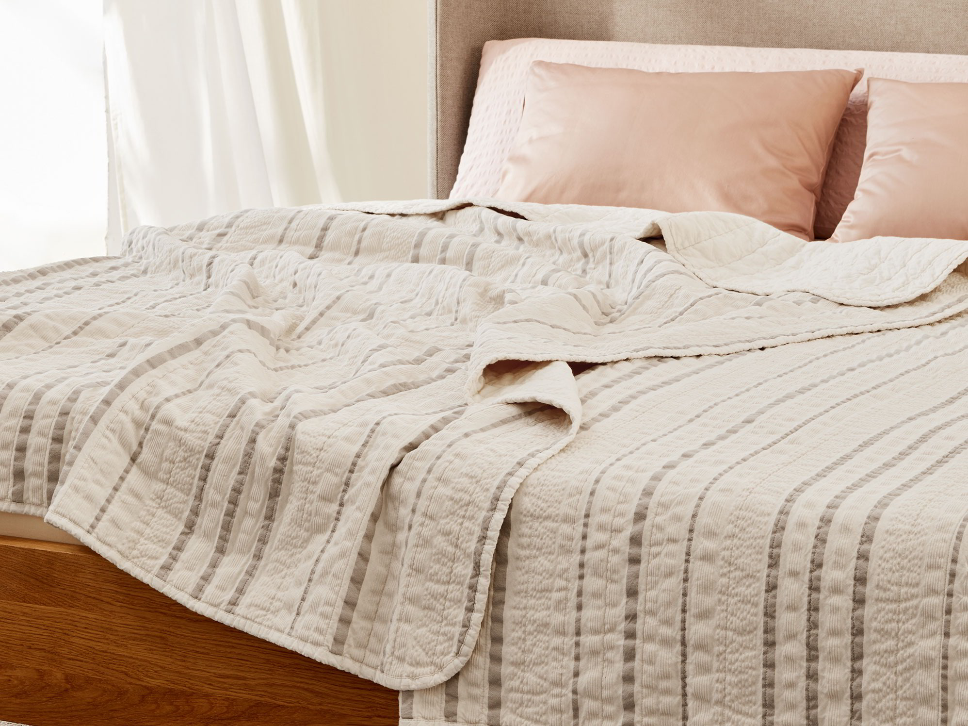 Schöne, leichte, elegante Sommerdecke mit einer Füllung aus hautfreundlicher Bio-Baumwolle und einem Baumwollbezug mit attraktiver Ripp-Optik.