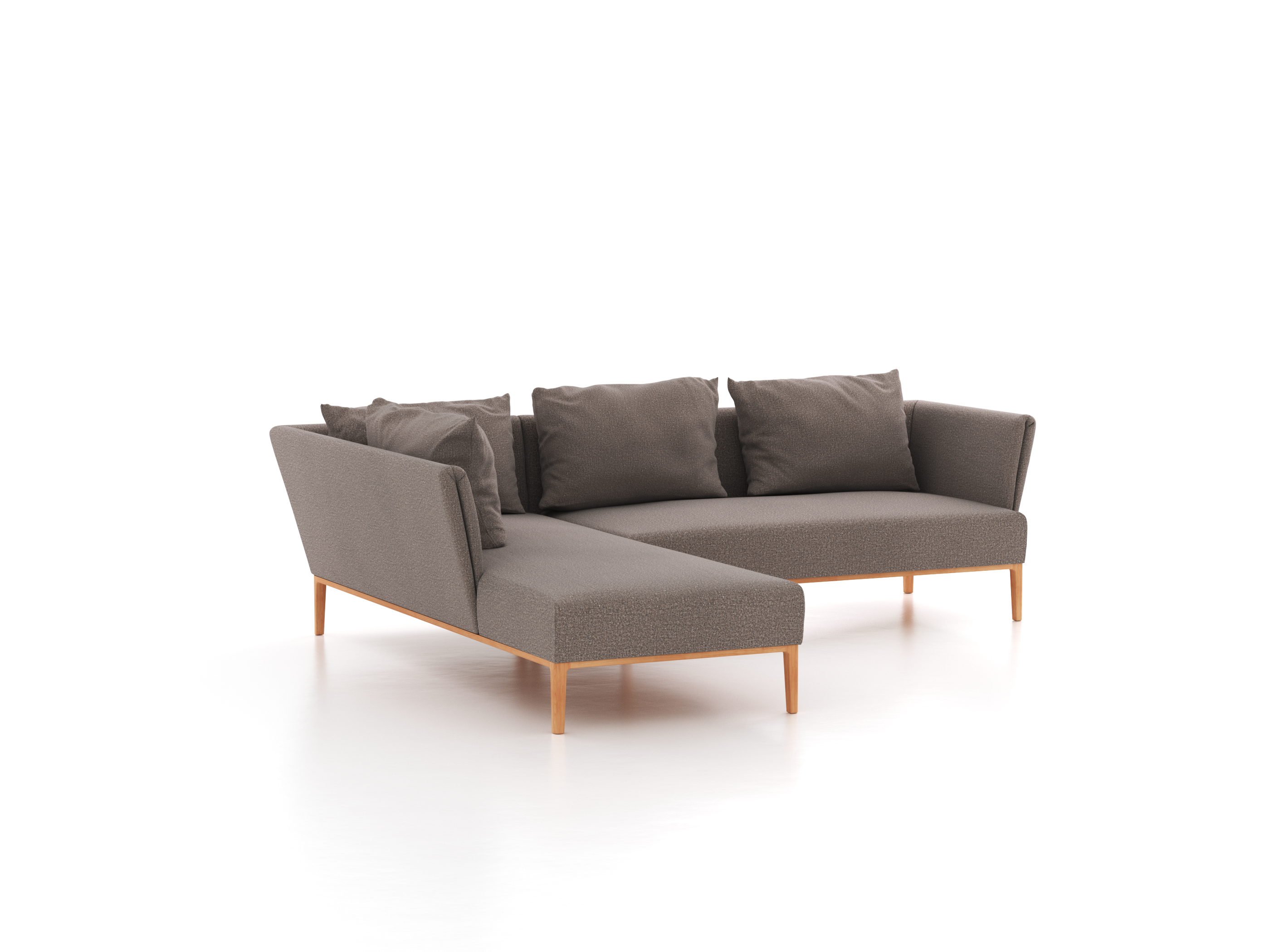 Ecksofa Lorea, Liegeteil links, inkl. 4 Kissen (60x85 cm), B 270 x T 225 cm, mit Bezug Wollstoff Tano Natur Dunkel (81), Buche