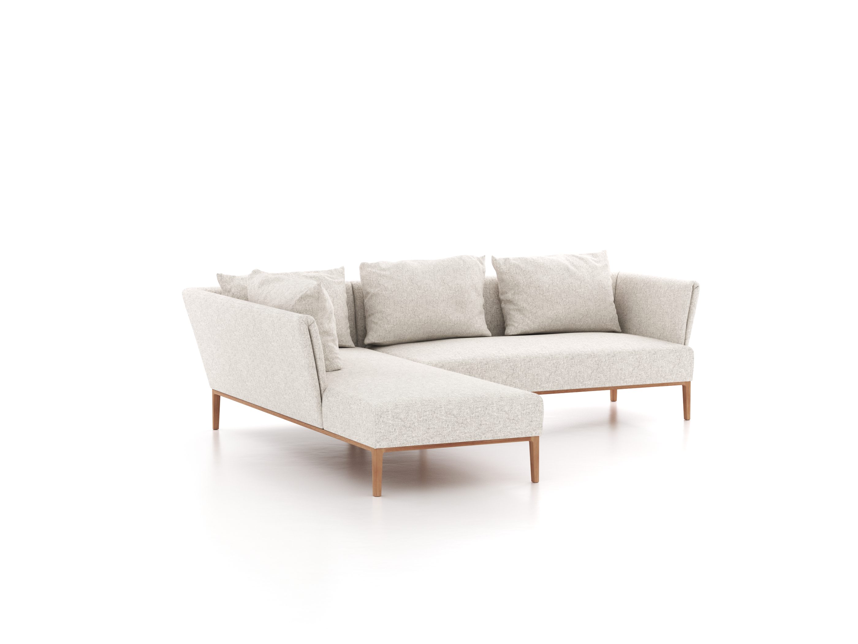 Ecksofa Lorea, Liegeteil links, inkl. 4 Kissen (60x85 cm), B 270 x T 225 cm, mit Bezug Wollstoff Tano Natur Hell (80), Eiche