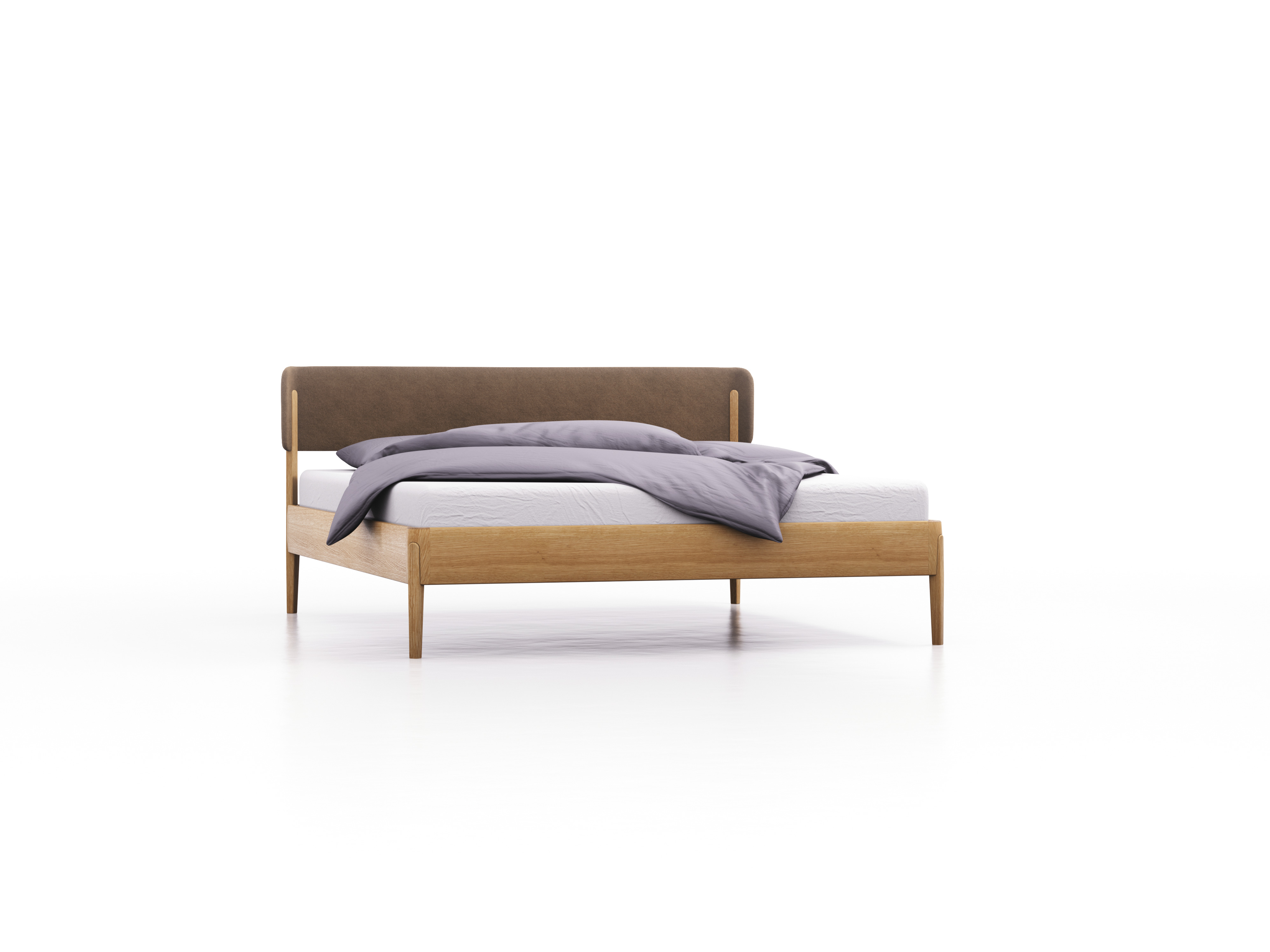 Bett Alwy mit Polsterbetthaupt, 180 x 200 cm, Wollstoff Stavang Haselnuss (65), Eiche