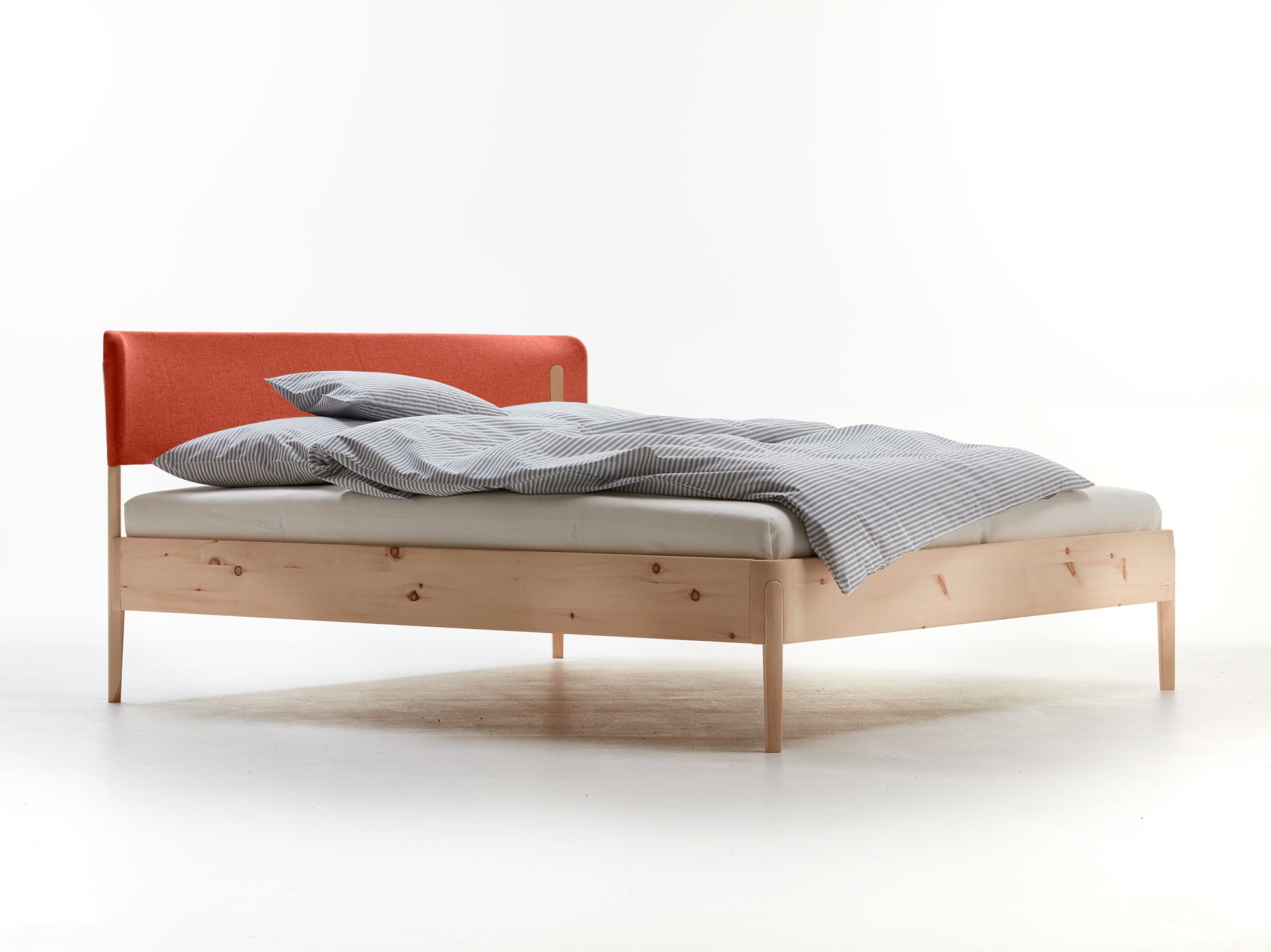 Spielerischer KontrastDas zentrale Stilelement dieses leichtfüßigen Bettes ist die sichtbare Überlappung der Bauteile. Die Holme am Kopfende des Bettes sind oben wie Spangen geformt. Sie tragen das Betthaupt, überlappen es und konstrastieren damit dessen plane Oberfläche auf spielerische Weise.Das Stil- und Funktionselement der Spange findet sich auch am Fußende des Bettes, wo die optisch deutlich abgesetzten Füße den Bettrahmen gleichsam umklammern und tragen.Material & FertigungWir fertigen Alwy aus europäischem Vollholz, arbeiten dabei mit gesteckten, satt sitzenden, wieder lösbaren Dübel- und Laschenverbindungen (keine Metallteile). So lässt sich Alwy ohne Qualitäts- und Funktionsverlust wiederholt zerlegen bzw. zusammenbauen.Die Oberfläche wird von Hand mit natürlichem Pflegeöl eingelassen. In Zirbe bleibt das Bett unbehandelt, um den typischen Duft dieser Holzart nicht zu beeinträchtigen.BetthäupterFür das markante Betthaupt mit den nach vorne gebogenen Enden wird eine Platte aus verwindungsfestem Pappelsperrholz in unserer Werkstätte mit weichem Schurwollfilz handwerklich sauber gepolstert, straff mit dem Möbelstoff Ihrer Wahl bezogen (s. o.) und mit dekorativen Nähten sorgfältig verarbeitet.Alwy kann auch mit einem puristischen Holzbetthaupt oder ohne Betthaupt gewählt werden.Für den Betthauptbezug kann unter 14 NATURTEXTIL BEST-zertifizierten Möbelstoffen aus Schurwolle (Schaf) gewählt werden.Preis, inkl. Aufstellservice, ohne Lattenrost, Matratze und Zubehör. -