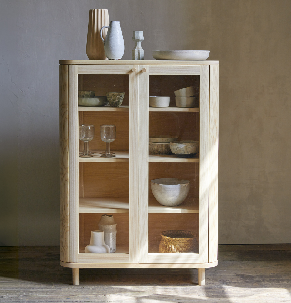 Unsere Vitrinen verbinden optische Leichtigkeit und zurückhaltende Eleganz mit Stabilität, Ordnung und Stauraum, also Schönheit mit Nutzen. Von klaren Linien geprägtes Design, Naturmaterialien wie Massivholz aus Mitteleuropa sowie hochwertiges Glas, handwerkliche Fertigungsweise unter Verzicht auf Metall und Kunststoff: Vitrinen von Grüne Erde bilden den geeigneten Rahmen, um ausgewählte Objekte stilvoll in Szene zu setzen, und sorgen dafür, dass Geschirr, Gläser, Bücher und besondere Lieblingsstücke angemessen präsentiert werden.