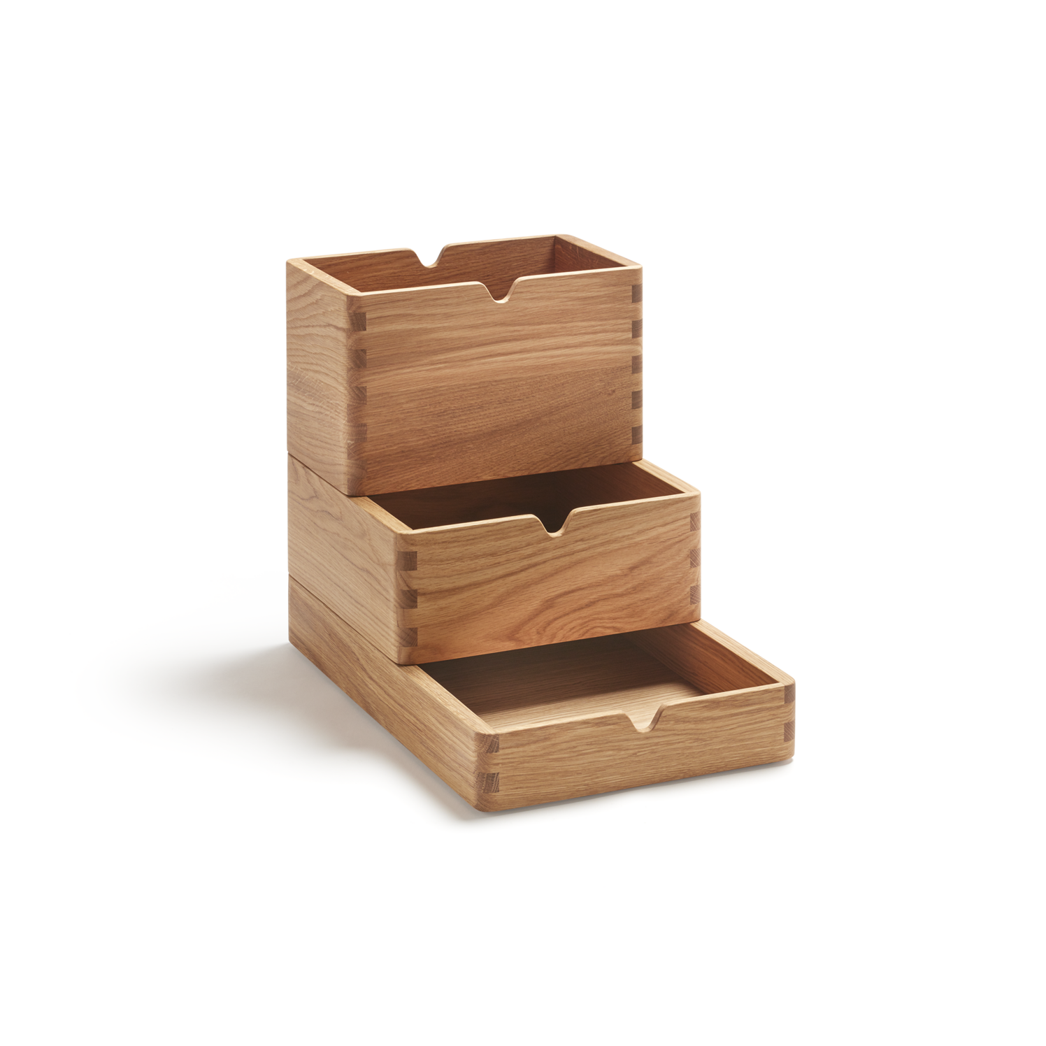 Wir bieten Ihnen 7 verschiedene stapelbare Aufbewahrungsboxen: Standardbreite 28 cm, in 3 Tiefen und 3 Höhen – sowie eine Schubladenbox, bestehend aus Corpus und 3 unterschiedlich hohen Laden.