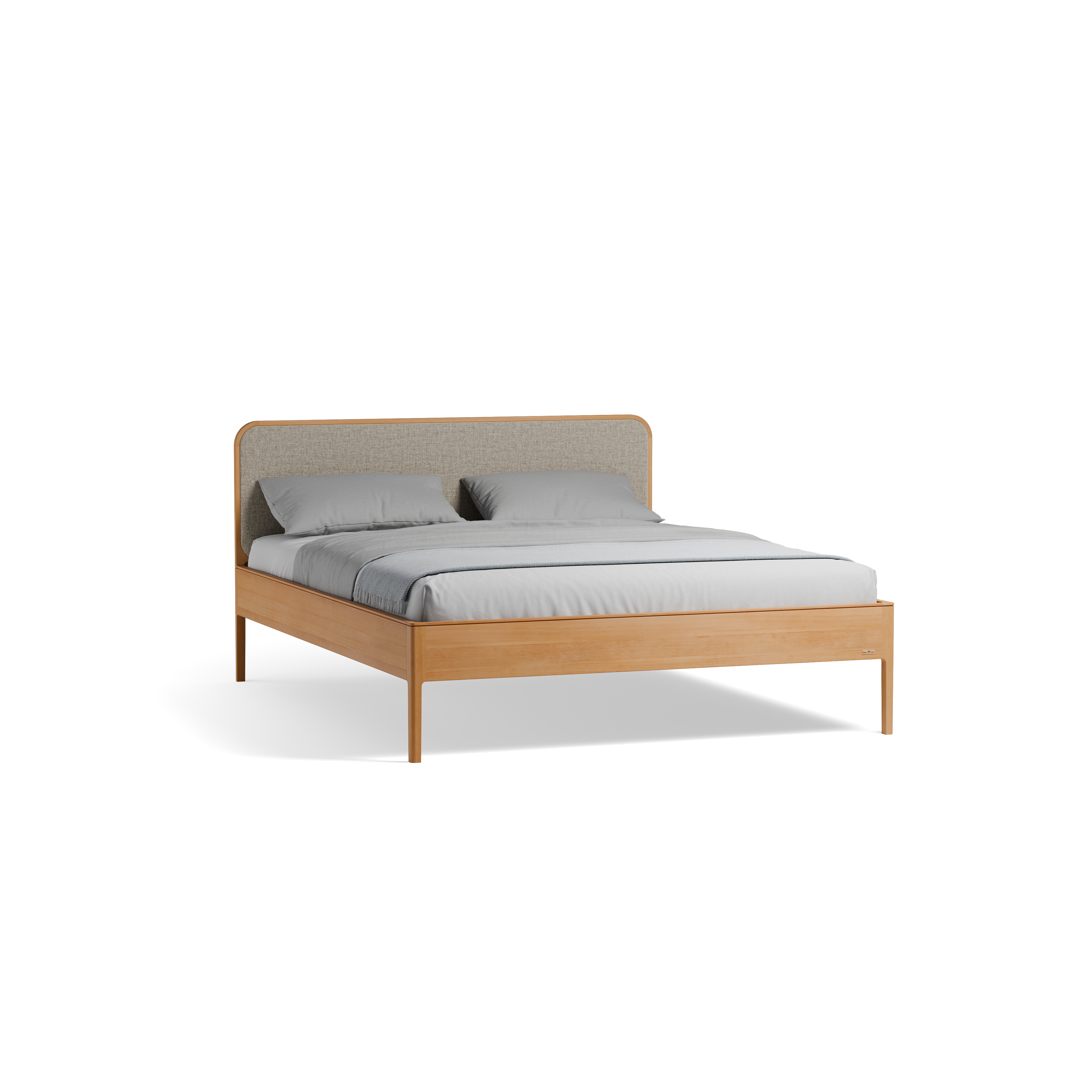 Bett Tenso mit Polsterbetthaupt (Wollstoff Tano natur hell, Buche, 160 x 200 cm)