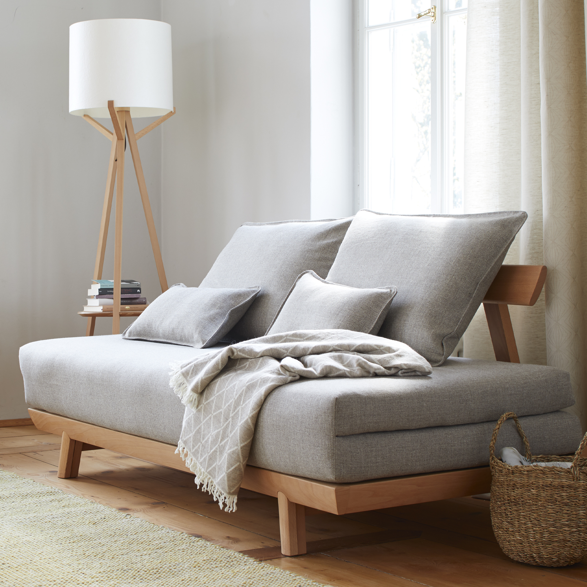 Bettsofa Doppio 160x200 cm inkl. 2 Kissen (Wollstoff Stavang kiesel, Eiche)