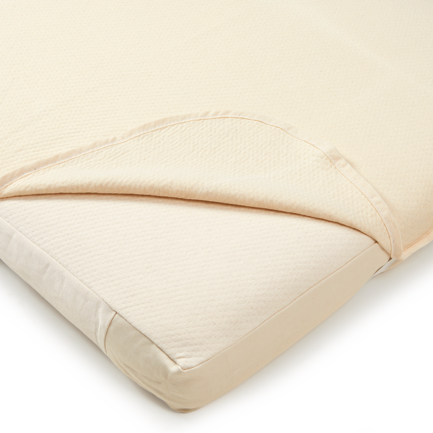 Besonders dicke und saugfähige Auflage aus elastischem Baumwoll-Doppelstrickstoff. Baumwolle aus kbA: Der Stoff ist aus einem Garn doppellagig gestrickt (nicht gewebt). So bekommt die Auflage mehr Volumen und schmiegt sich hervorragend an die Matratze an. Die Ränder sind sauber mit Schrägband eingefasst. Mit elastischen Naturlatexbändern an den Ecken – zum einfachen und schnellen Festmachen der Auflage an der Matratze. Ausschließlich aus pflanzlichen Fasern und waschbar, daher auch für (Tierhaar-) Allergiker gut geeignet.
