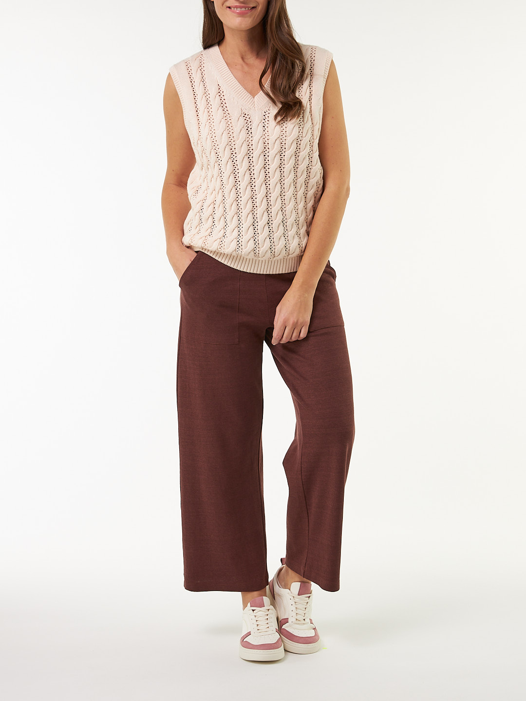 Gemütliche Culotte aus hochwertigem Leinen kbA und weicher Baumwolle kbA. Sie überzeugt mit angenehmer Haptik, zeitloser Optik und einer bequemen Passform. Ein besonderes Highlight ist die plattierte Leinen-Qualität, welche für ein besonders leichtes Tragegefühl sorgt. Das Modell mit dem weiten Bein in 7/8-Länge hat einen elastischen Bund im hinteren Saum und zwei aufgesetzte Taschen auf der Vorderhose. Die Culotte lässt sich mühelos kombinieren und wird garantiert zu einem beliebten Basic-Kleidungsstück.