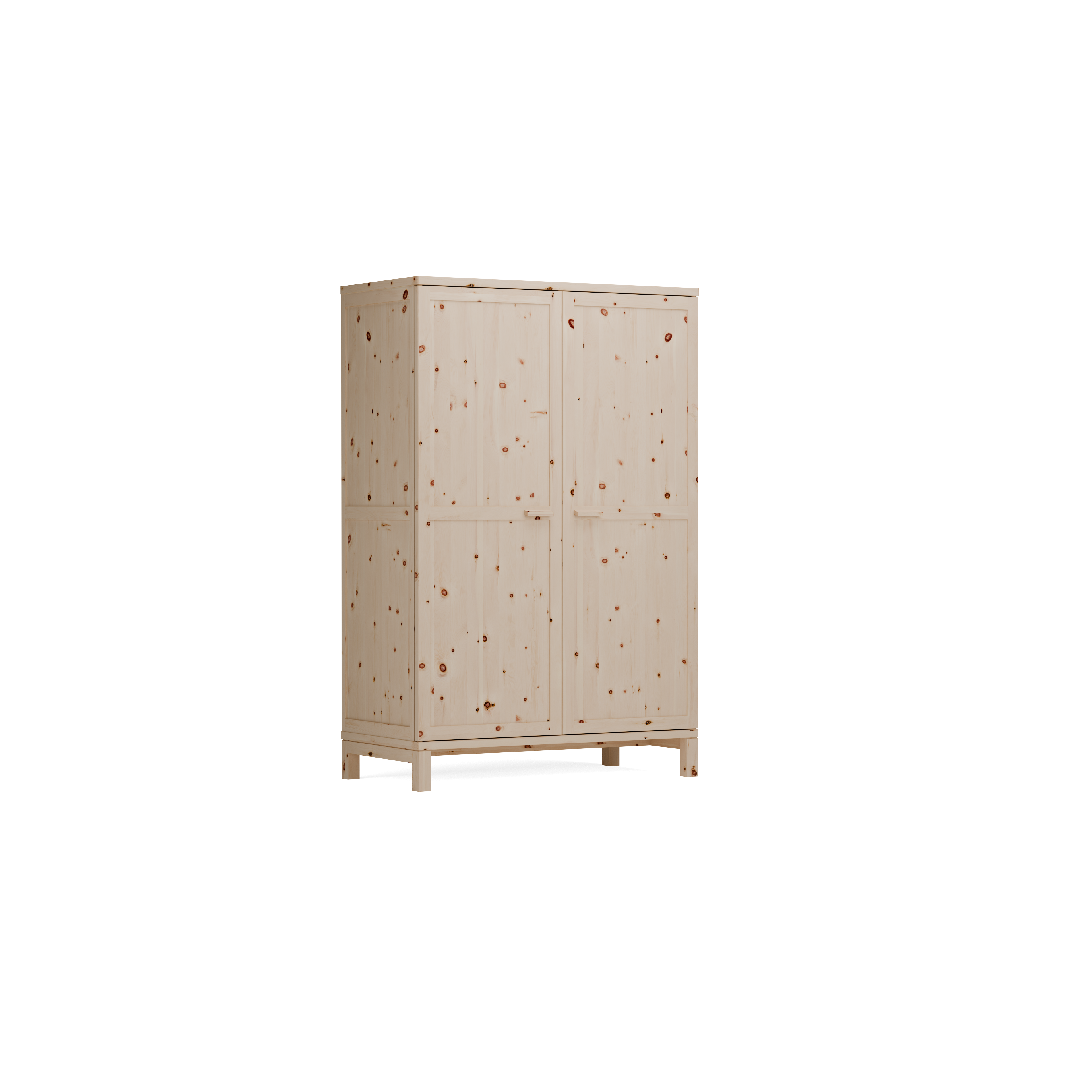 mit Fußgestell (Schrankhöhe H 186,4 cm) Der Korpus dieser Schrankvariante ruht auf einem 15 cm hohen, stabilen, solide verleimten Fußgestell aus Massivholz. Es hebt den Schrank vom Boden ab, macht ihn optisch leicht.