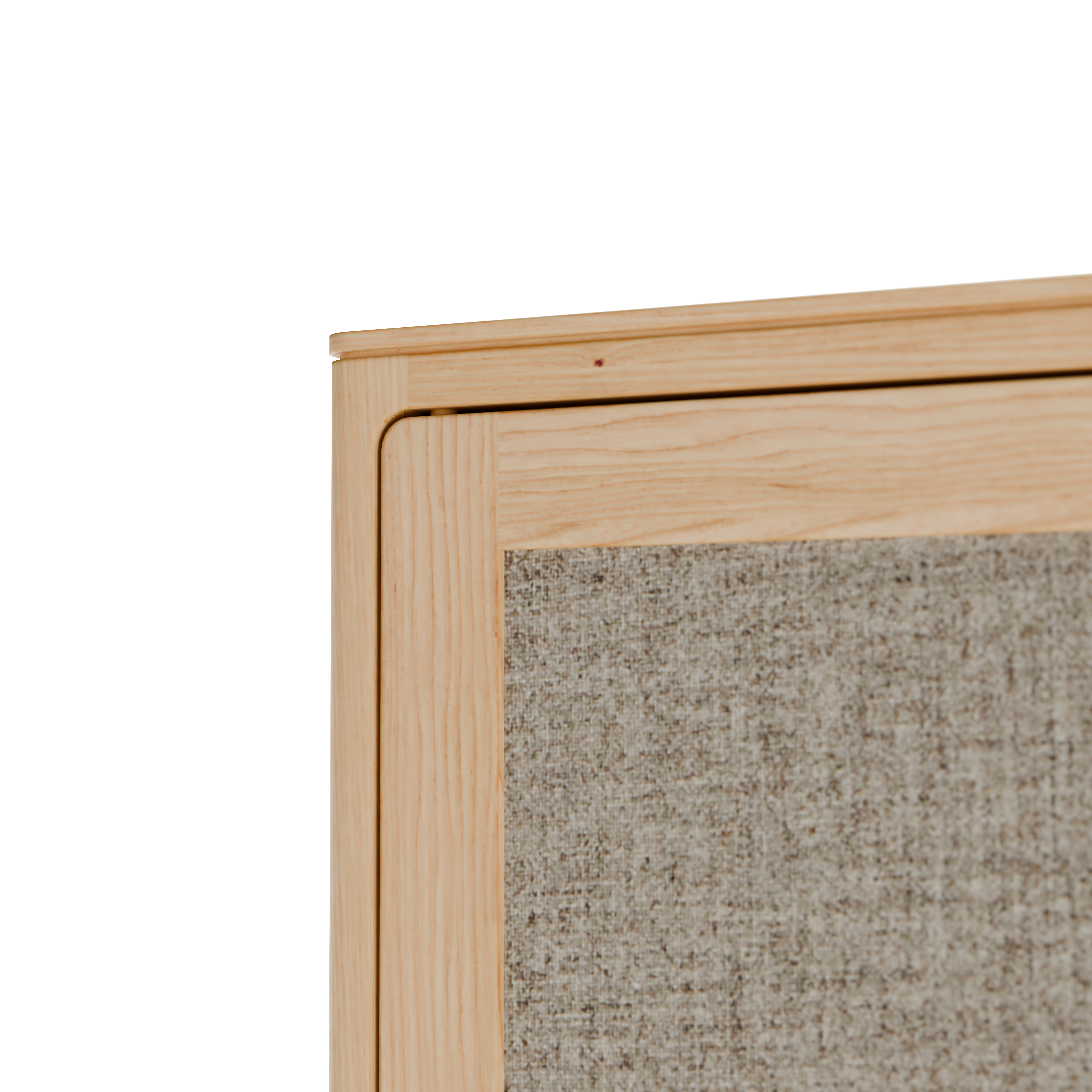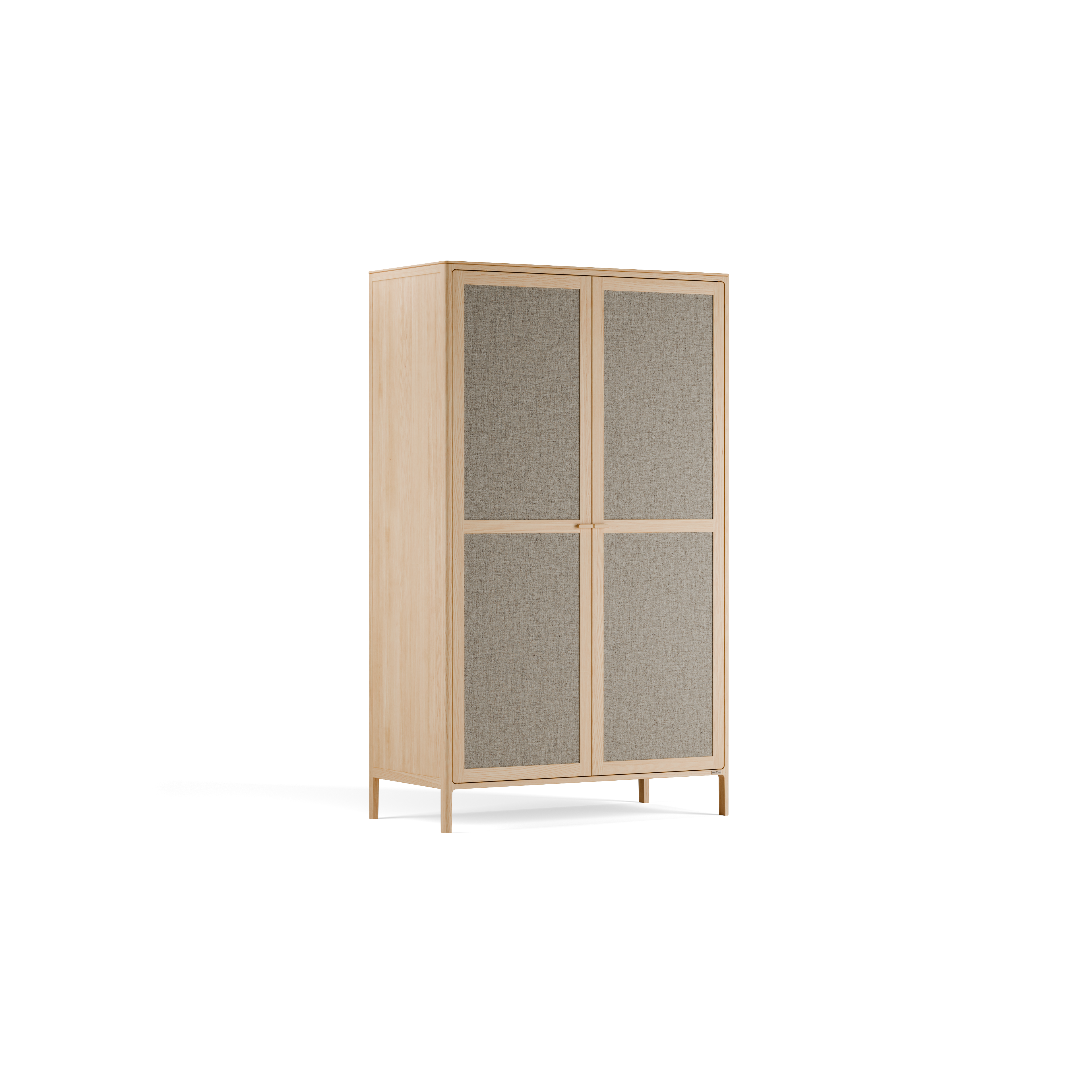 Rahmen und Füße: Massivholz; Holzfüllungen der Türen, sowie Seiten- und Rückwände: verwindungsfestes Schichtholz (Pappel), Deckfurnier in der Holzart des Rahmens; Stofffüllungen: 100 % Schurwolle (Schaf), IVN NATURTEXTIL BEST-zertifiziert.