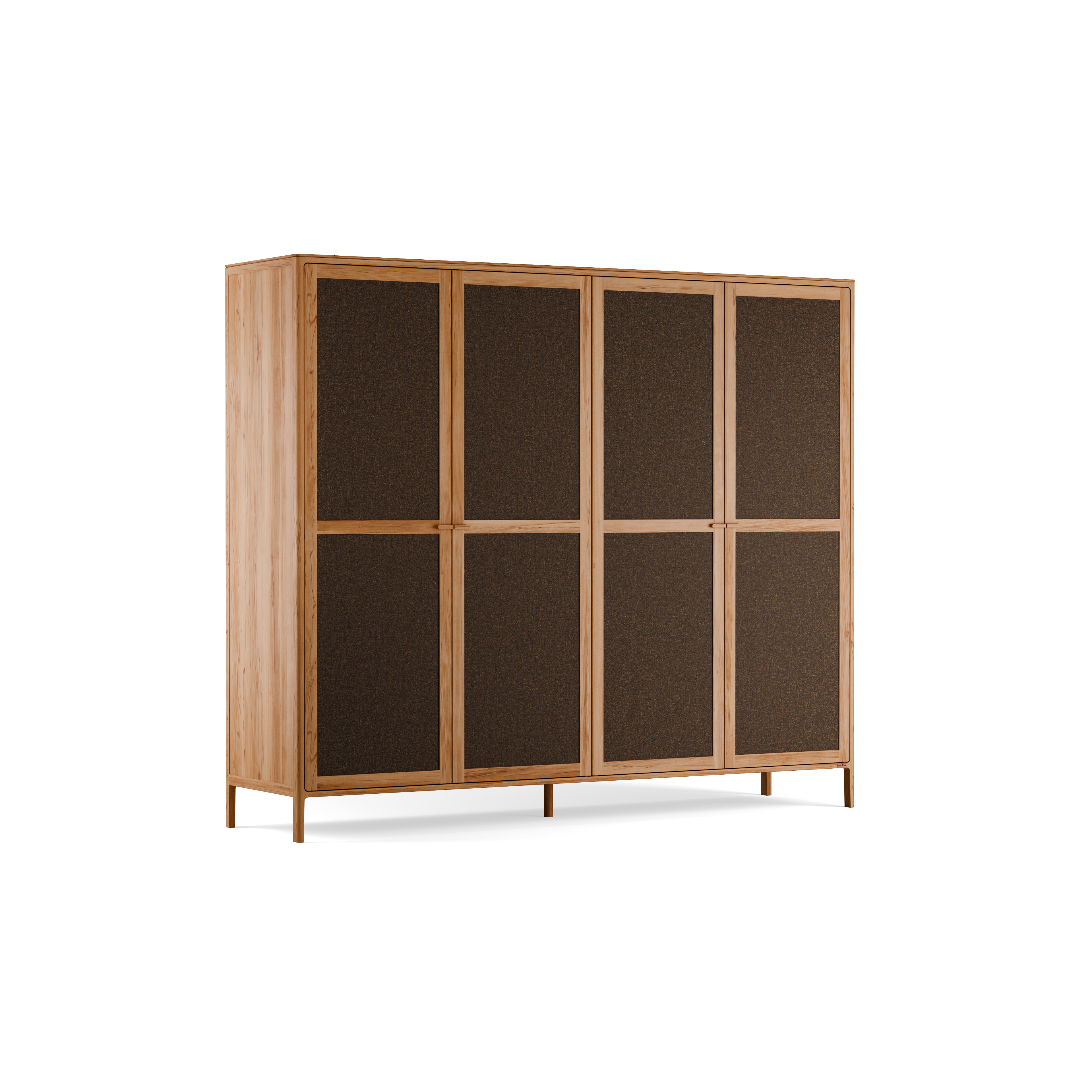 Wir fertigen Tenso in klassischer Rahmen-und-Füllung-Bauweise: Rahmen aus Massivholz, Füllungen aus Holz oder Stoff. Diese Konstruktion macht den Schrank relativ leicht und gleichzeitig sehr stabil.