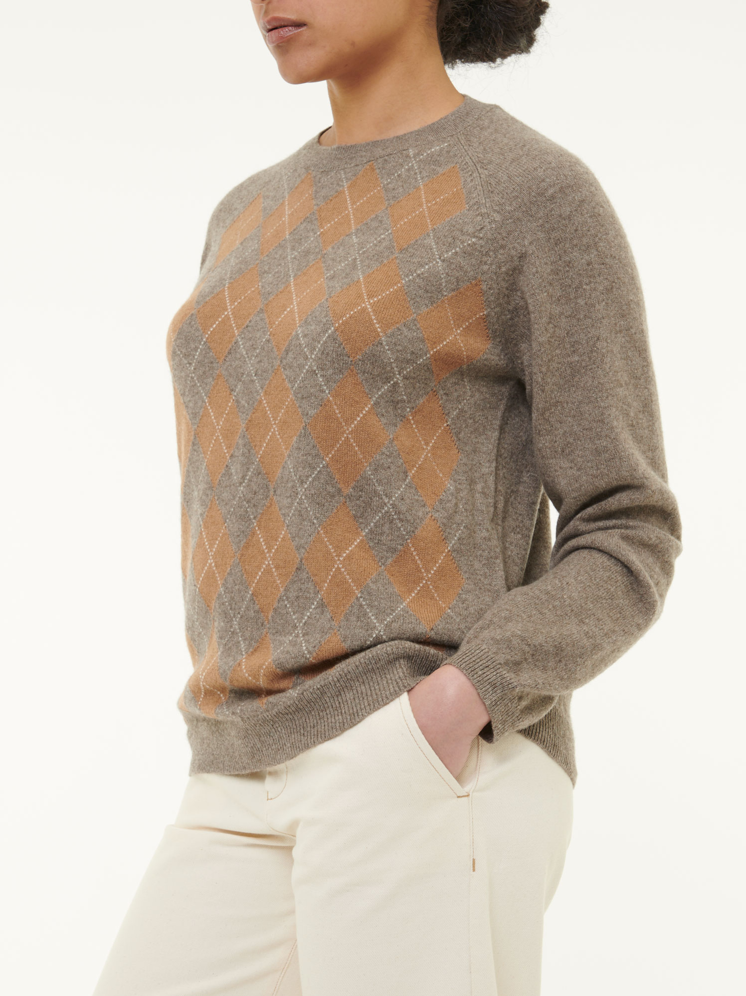 Pullover aus Yak Kamelhaar und Schurwolle (yak intarsia hasel/kamel, L)