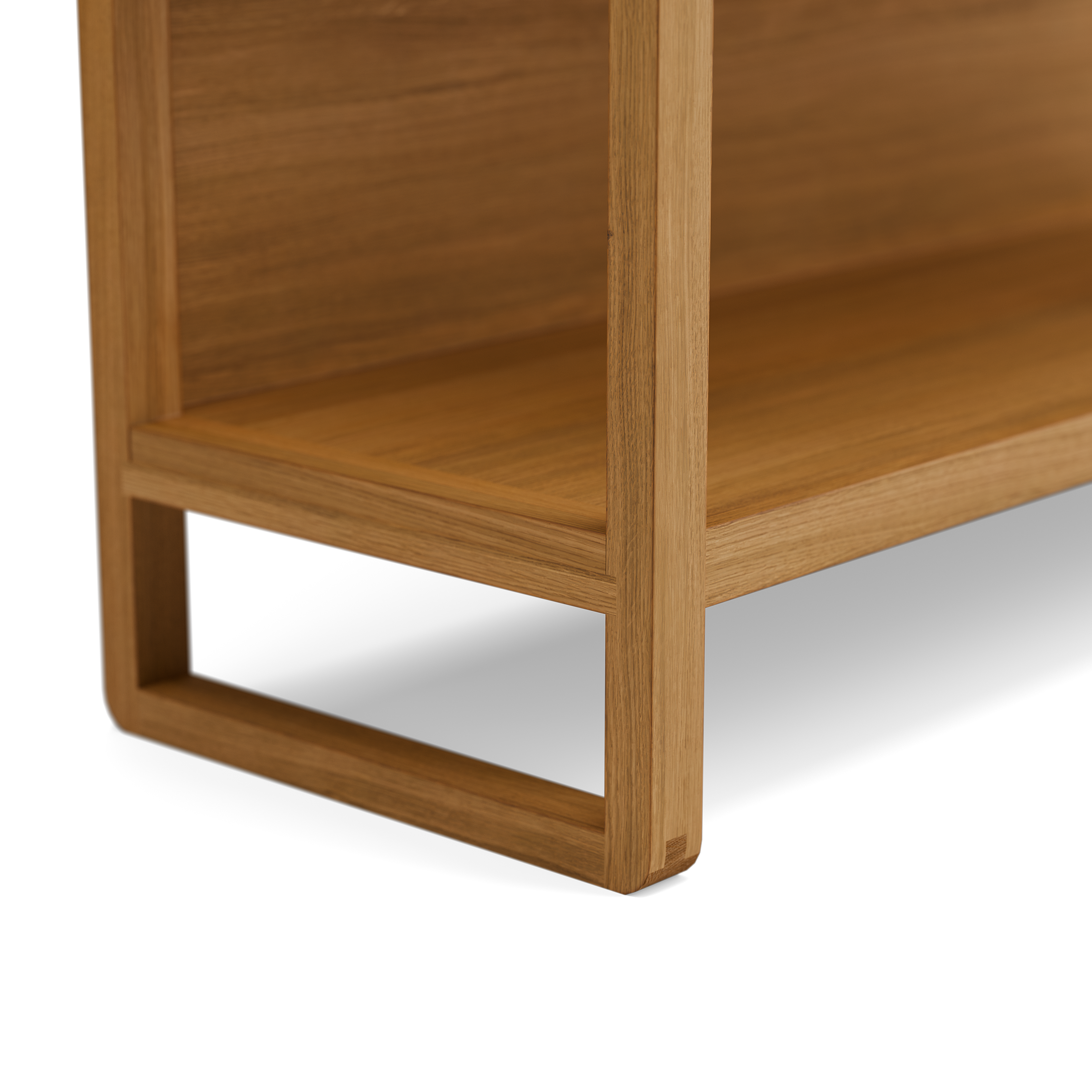 Quintum ist zeitgemäß, optisch leicht und schlank gestaltet, gleichzeitig sehr stabil. Das Grundgerüst des Regalsystems bilden leiterförmige Seitensteher in 6 verschiedenen Höhen. An deren charakteristisch gebogener Unterseite ist eine für die Massivholztischlerei typische "Schlitz- und Zapfenverbindung" sichtbar.