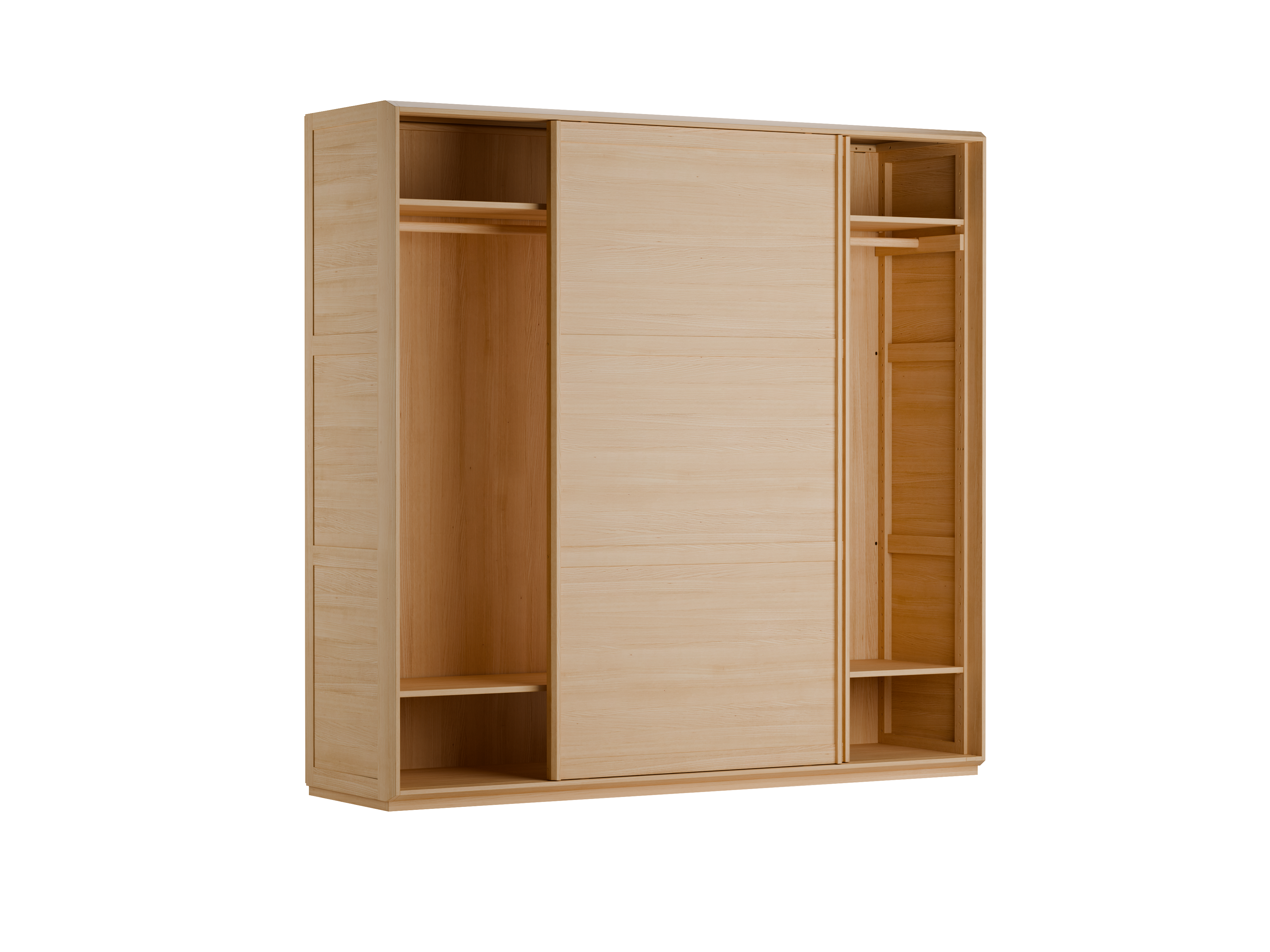 Schrank Akumi Eckig mit Schiebetüren, Esche, Türfüllung Holz, B246,6xT66,9xH238,7cm, inkl. Grundausstattung Esche